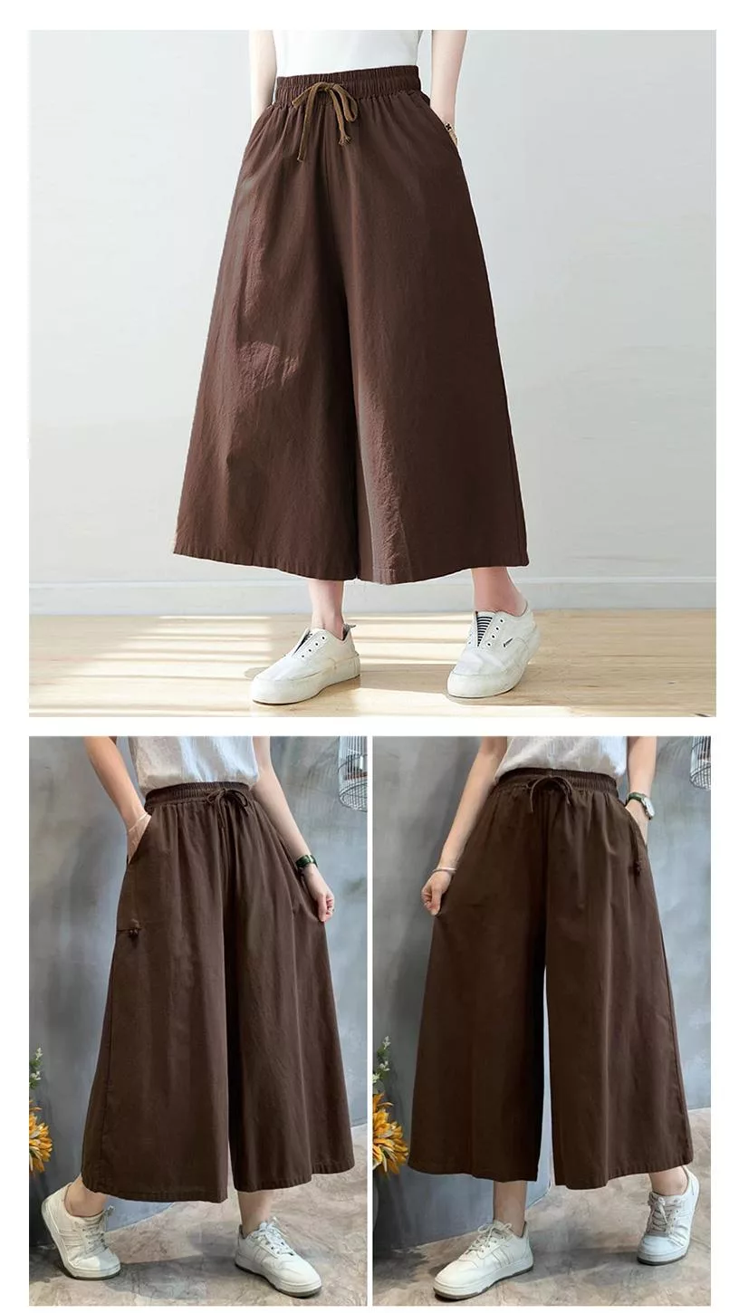 【AnZa】文藝水洗棉麻寬鬆裙褲(7色) FREE 黑色