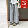 【AMIEE】格紋毛呢休閒七分寬褲(KDP-6038) FREE 咖啡色
