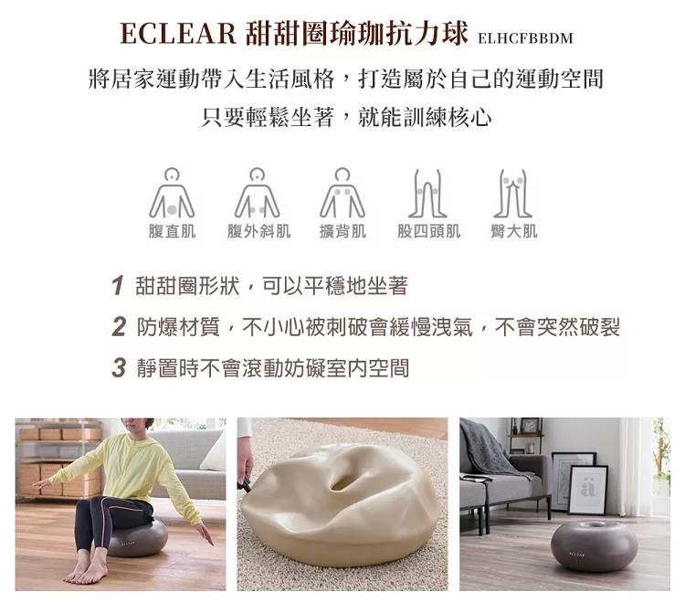 ELECOM ECLEAR 甜甜圈瑜珈抗力球- 象牙白50cm