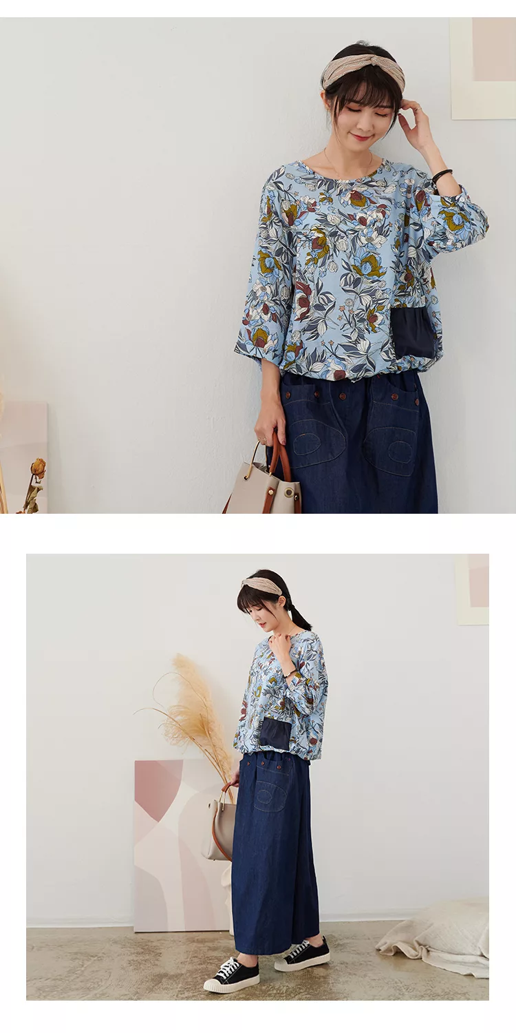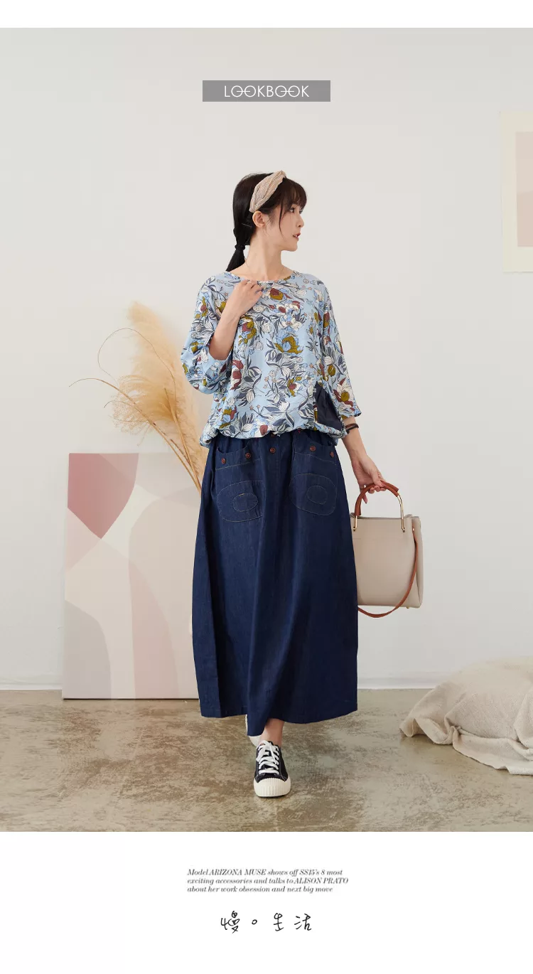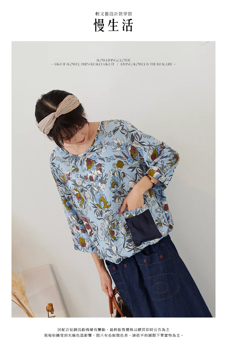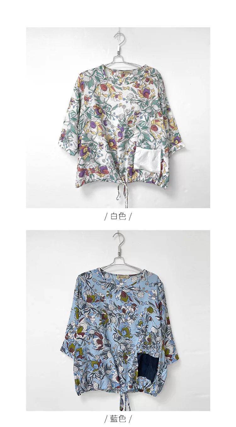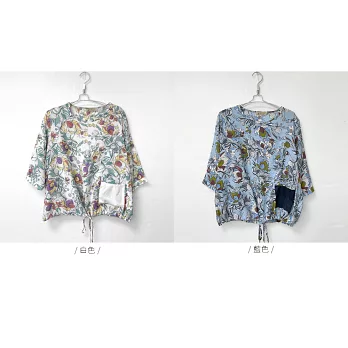【慢。生活】薄款印花口袋下襬抽繩上衣 73002  FREE 白色