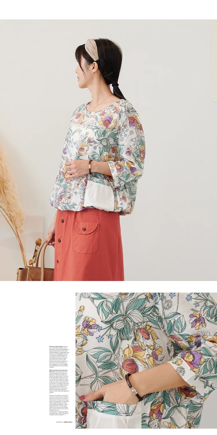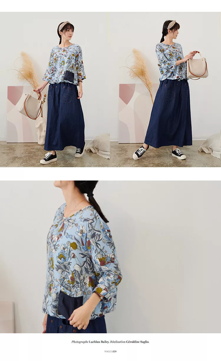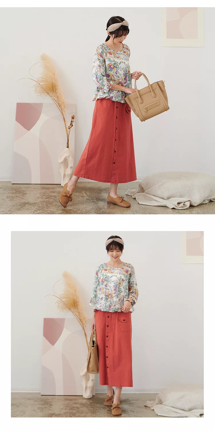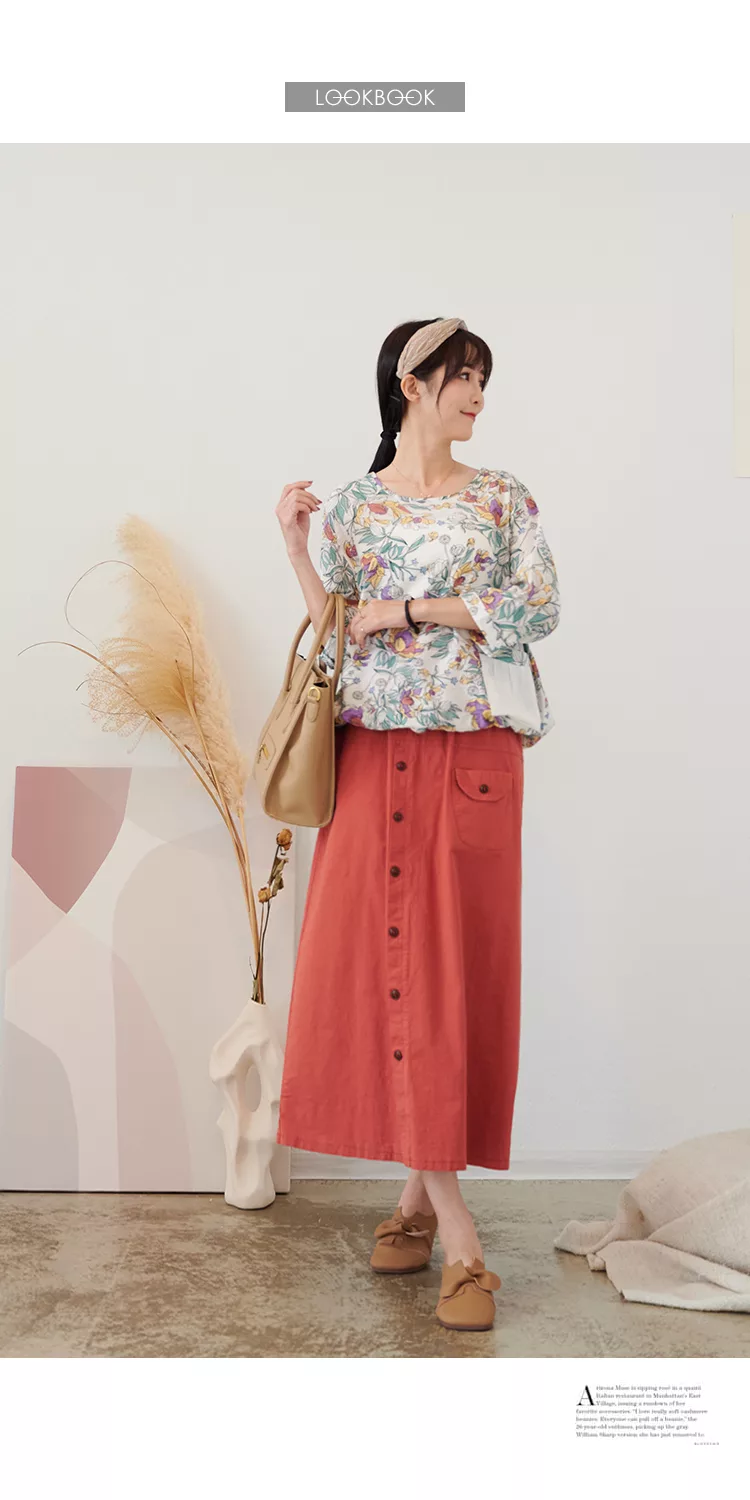 【慢。生活】薄款印花口袋下襬抽繩上衣 73002  FREE 白色