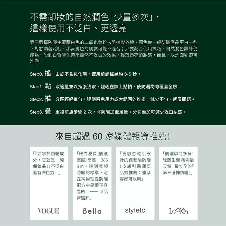 ❖ 有效成分 二氧化鈦 10%(歐盟有機驗證機構天然認證、非奈米粒徑)