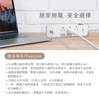 Tyson太順電業 343KS 3孔4切3座防塵蓋延長線(斜面開關/拉環扁插)-2.7M