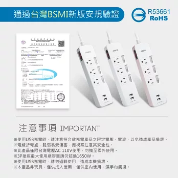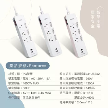 群加 PowerSync 3開3插彩色開關防雷擊延長線/1.2m(TS3C9012)