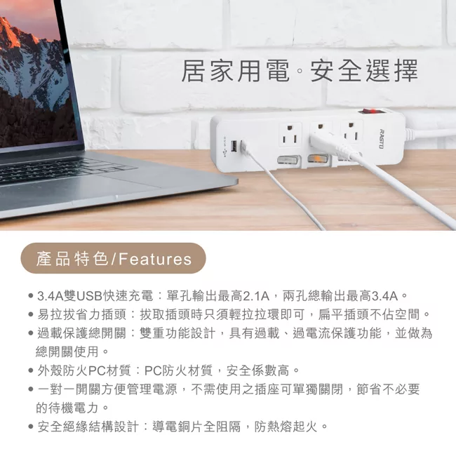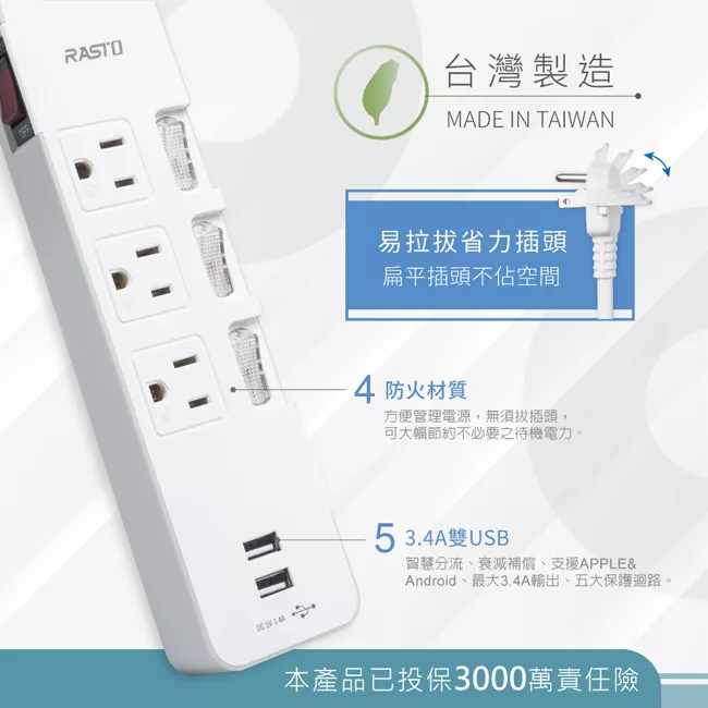 RASTO FP4 三插二埠20W PD+QC3.0壁插 白