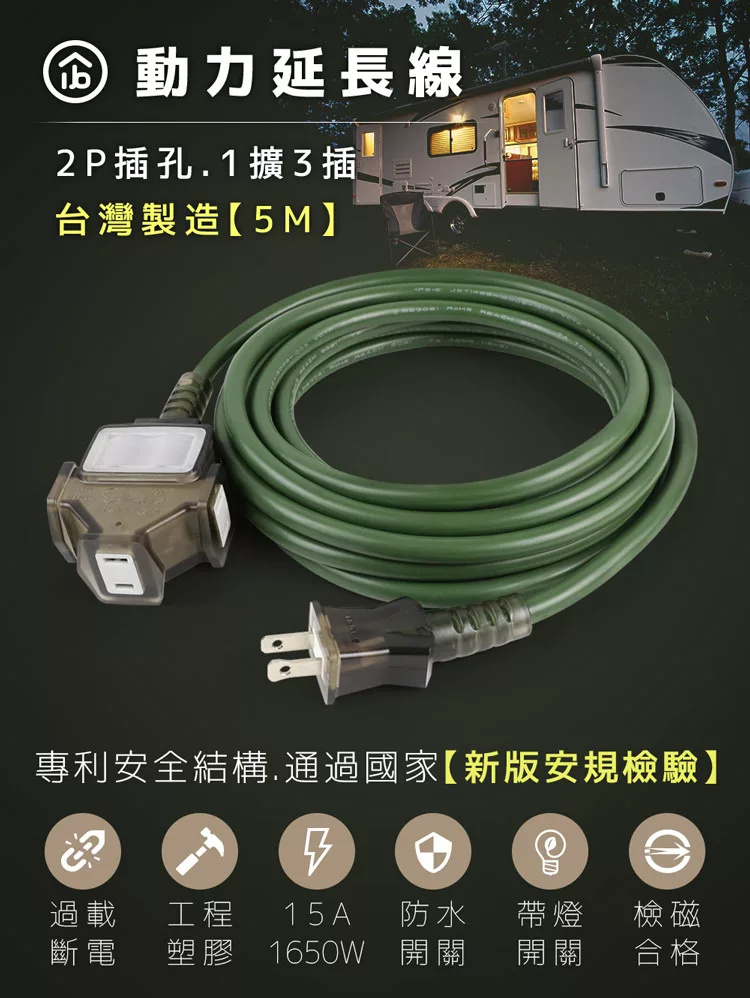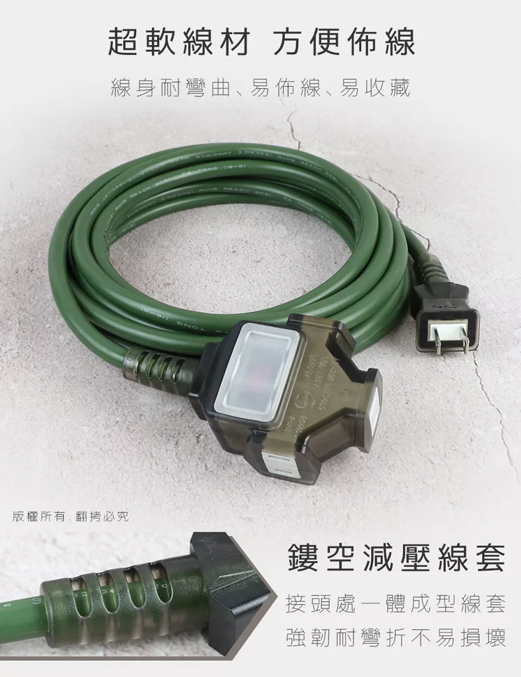 【太星電工】 一開三插延長線/2P 15A 9尺 總開關 過載保護 OEA31209 黑色