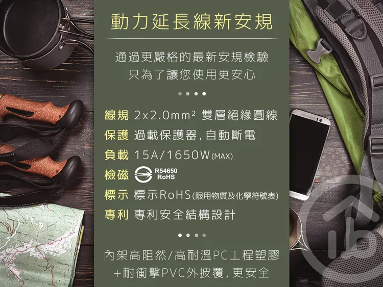 DIKE 安全加強型一切三座雙USB電源延長線 DAH423WT
