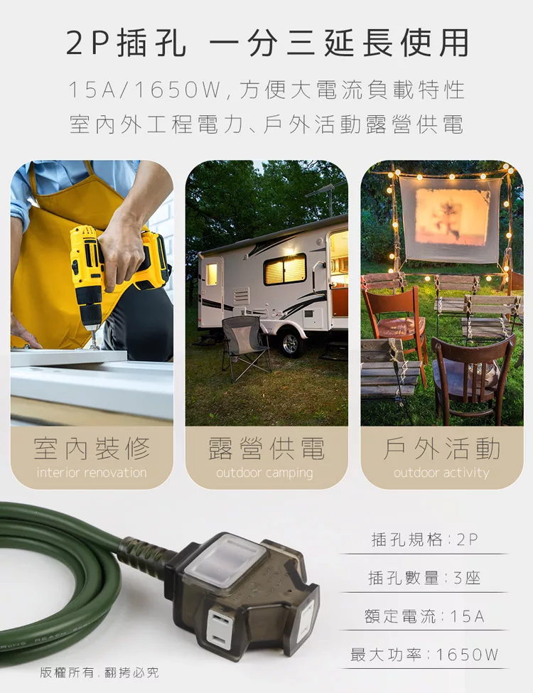 Tyson太順電業 213DC PD快充20W延長線(2孔1切3座+PD+QC3.0) 2.7M