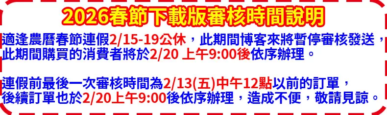 - 1下載產品:若您購買之商品為下載版產品,在博客來確認收款無誤後,最晚於三個工作天內,以電子郵件方式發出下載版產品的序號與檔案下載位置。