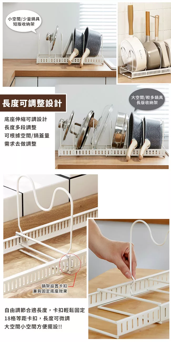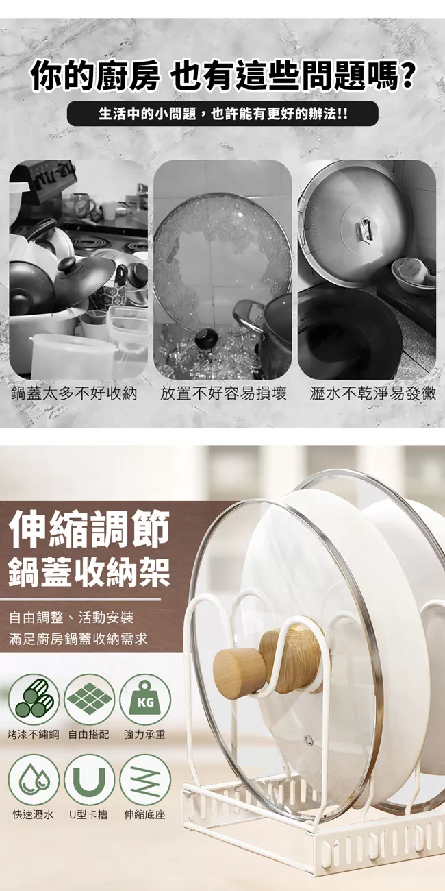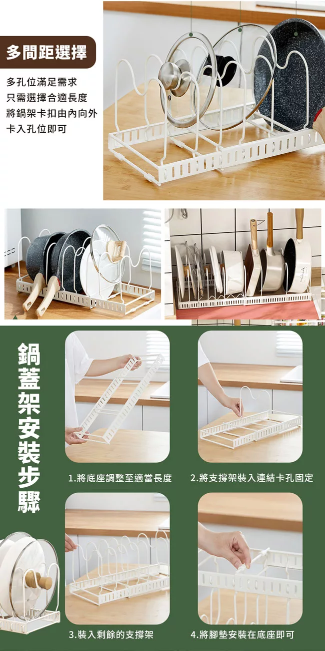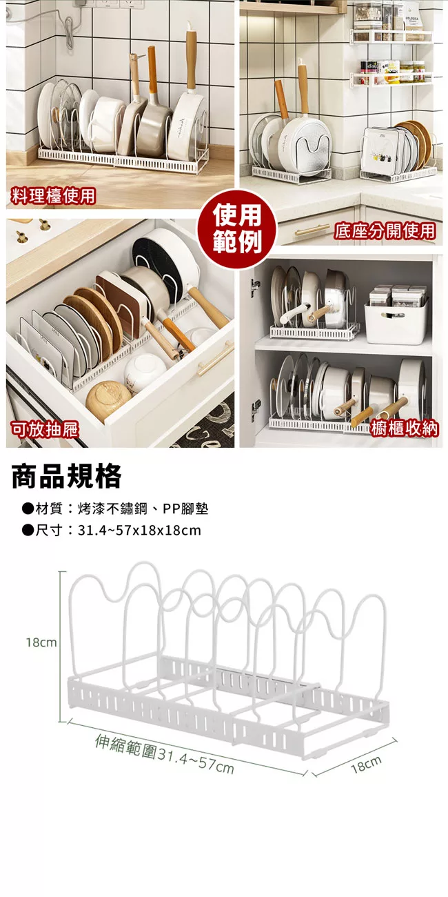 【好拾選物】伸縮碗盤鍋蓋架/可調節碗盤鍋蓋置物架-白色