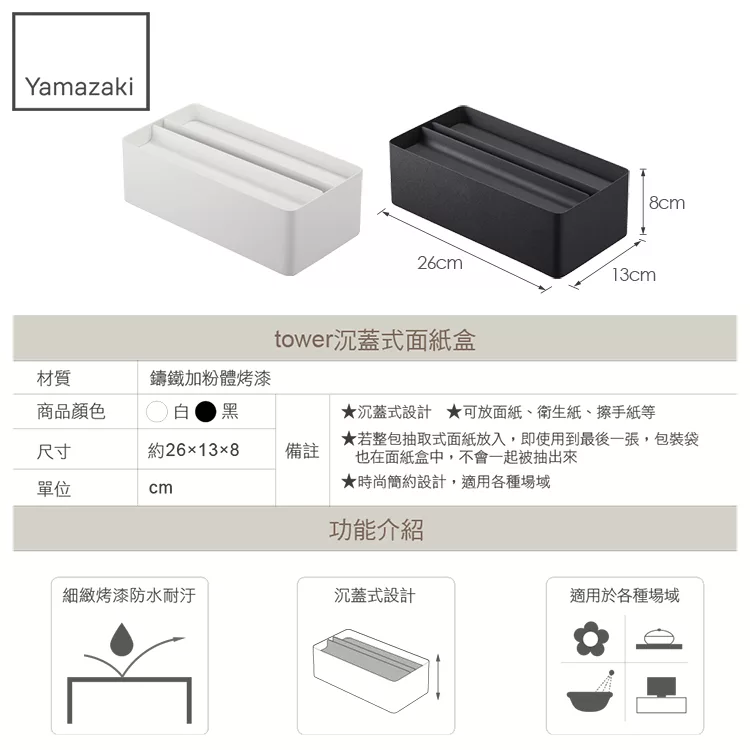日本【YAMAZAKI】tower沉蓋式面紙盒 (黑)