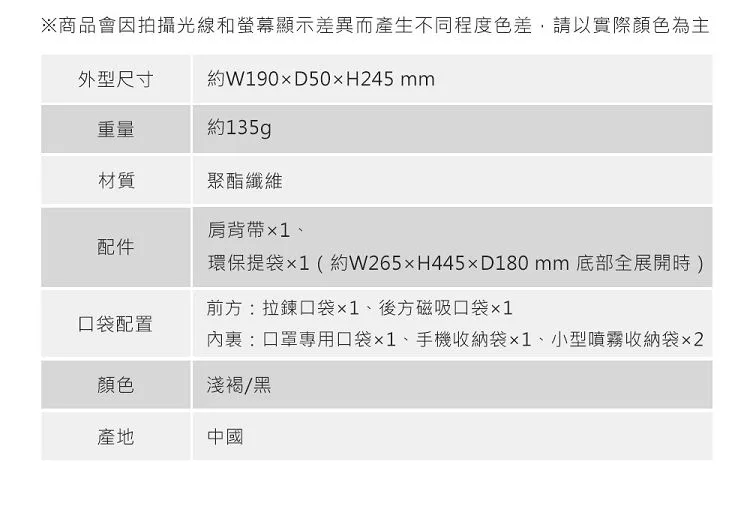 設置口罩專屬分層口袋,與其他物品隔離收納,保持衛生
