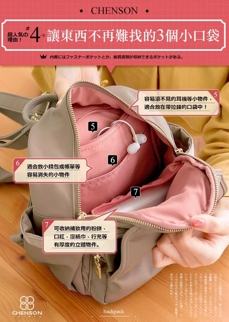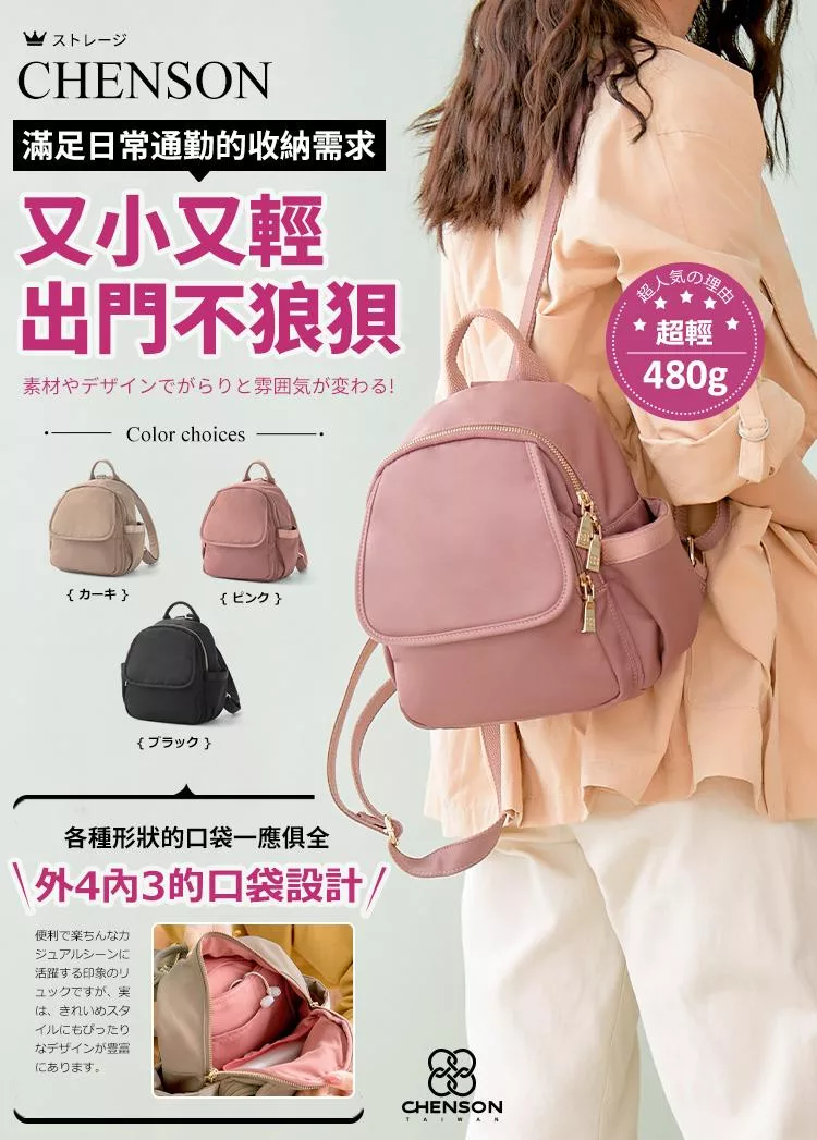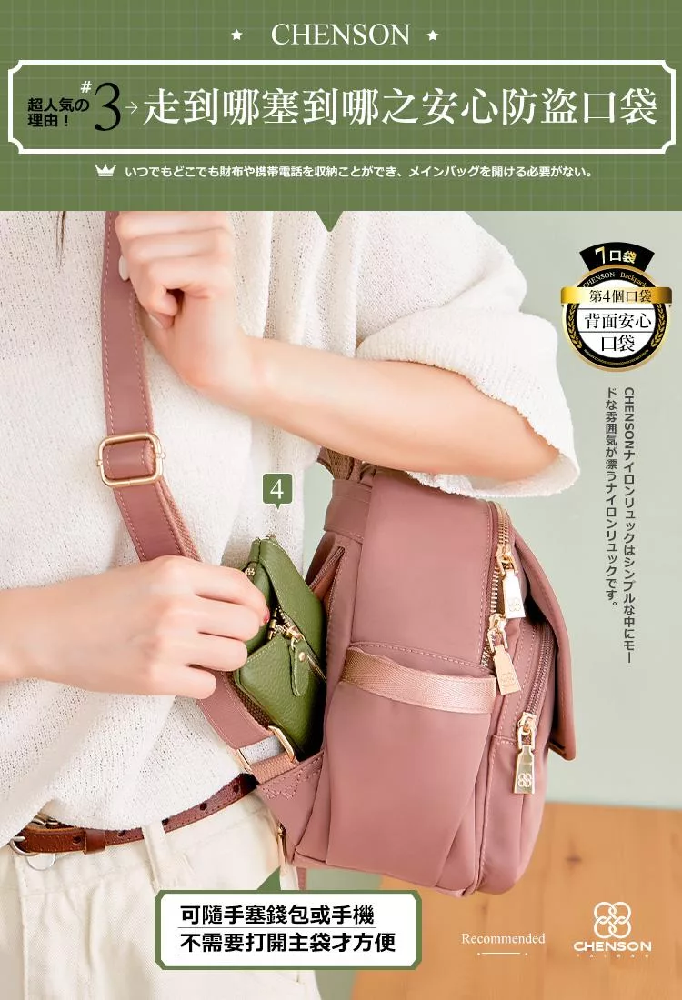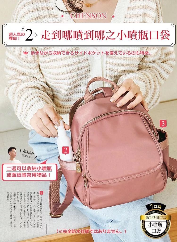 CHENSON 日常7口袋 厚底迷你後背包 粉紅 (CG15192-P)