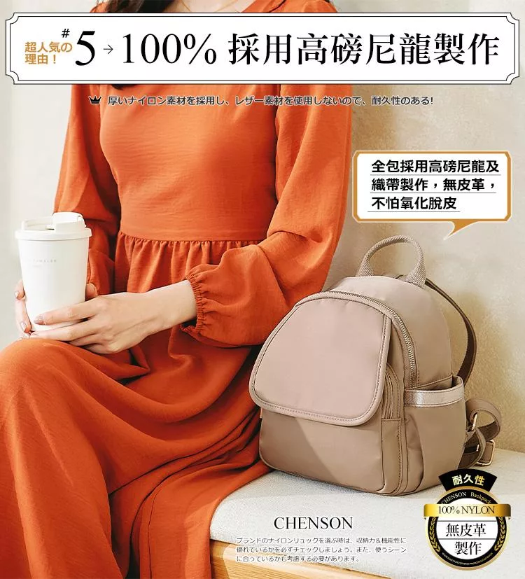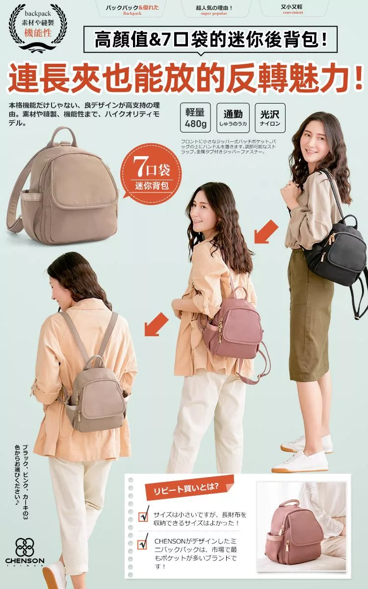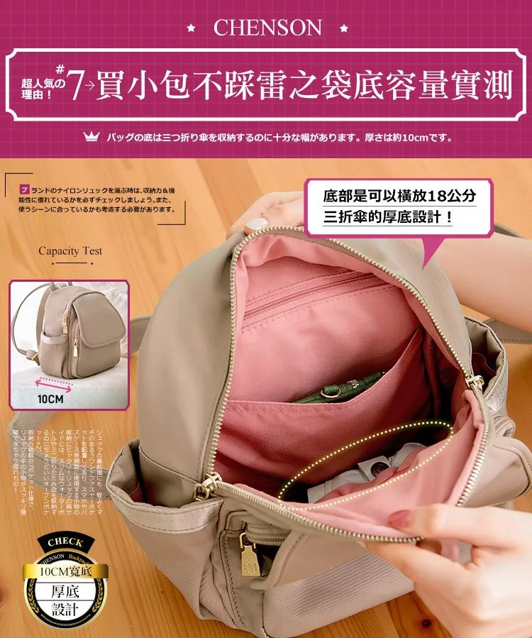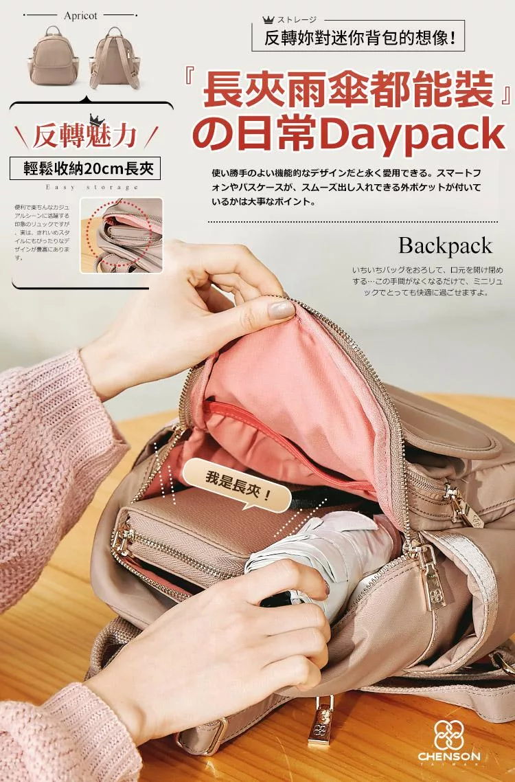 CHENSON 日常7口袋 厚底迷你後背包 卡其杏 (CG15192-K)