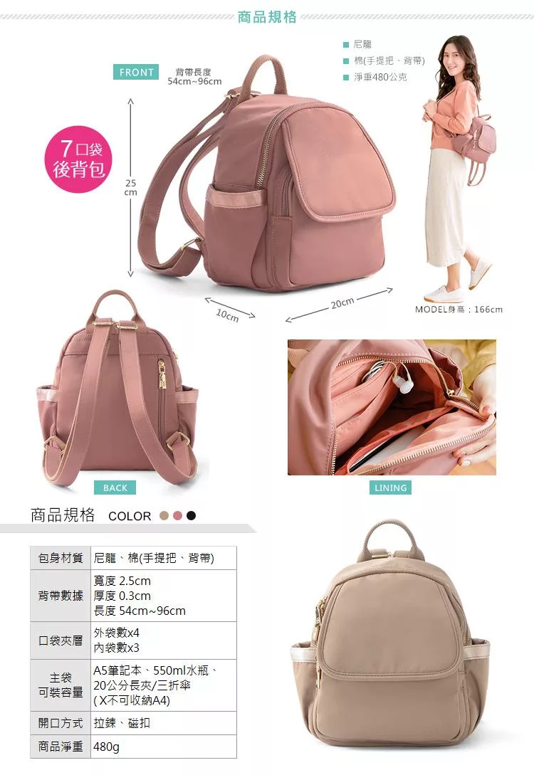 快速到貨 ✔最大可收納長夾三折傘 ✔又小又輕480g輕量包 ✔外4內3=7口袋設計 ✔貼背處有安全防盜口袋 ✔防滑雙層背帶設計