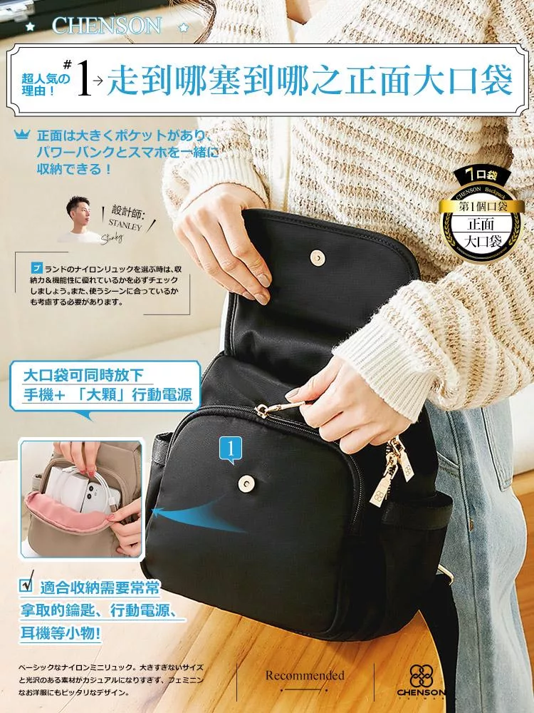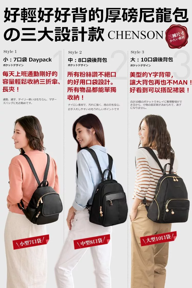 CHENSON 外出最愛中尺寸8口袋後背包 (CG83329-3) 黑