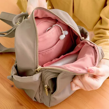 CHENSON 尼龍9口袋 媽媽包 後背包附水壺固定內口袋 (CG85110-K) 卡其杏