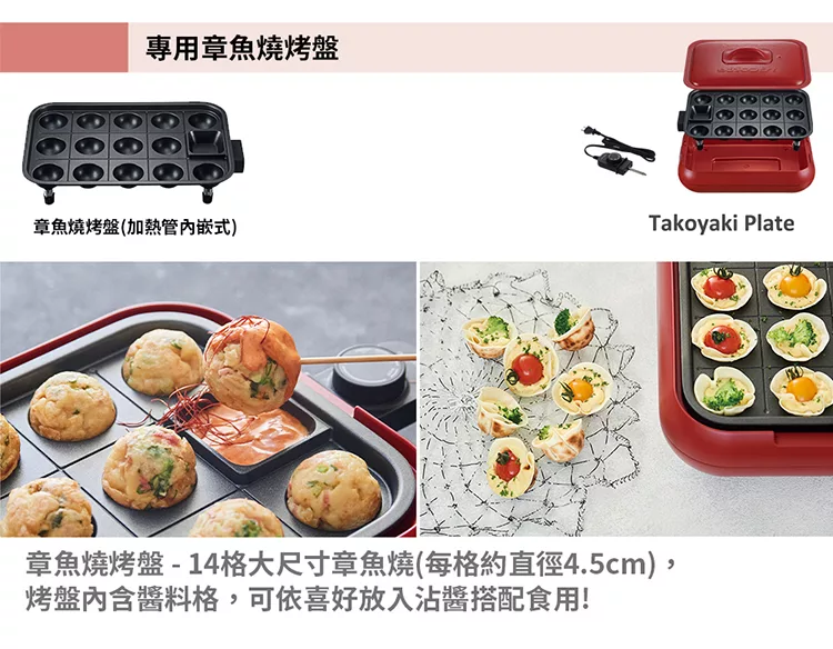 【日本BRUNO】無煙多功能電烤盤 BOE109 火烤多用組(附料理深鍋、減煙烤盤、平面烤盤、章魚燒烤盤、耐熱夾)- 開心果綠