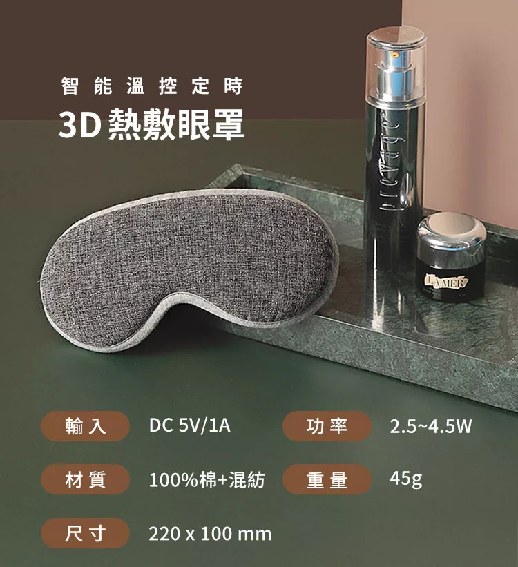 溫控3D熱敷眼罩|蒸氣眼罩 溫熱眼罩 眼睛熱敷 灰色