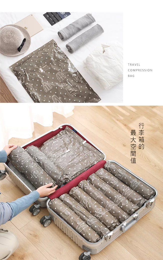 ◆ 商品名稱:超值6入-旅行收納手捲式真空壓縮袋(大+中+小)