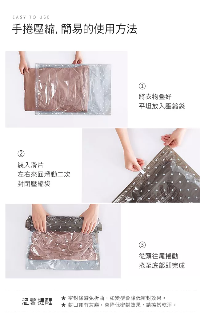 ★ 免工具手捲式壓縮袋