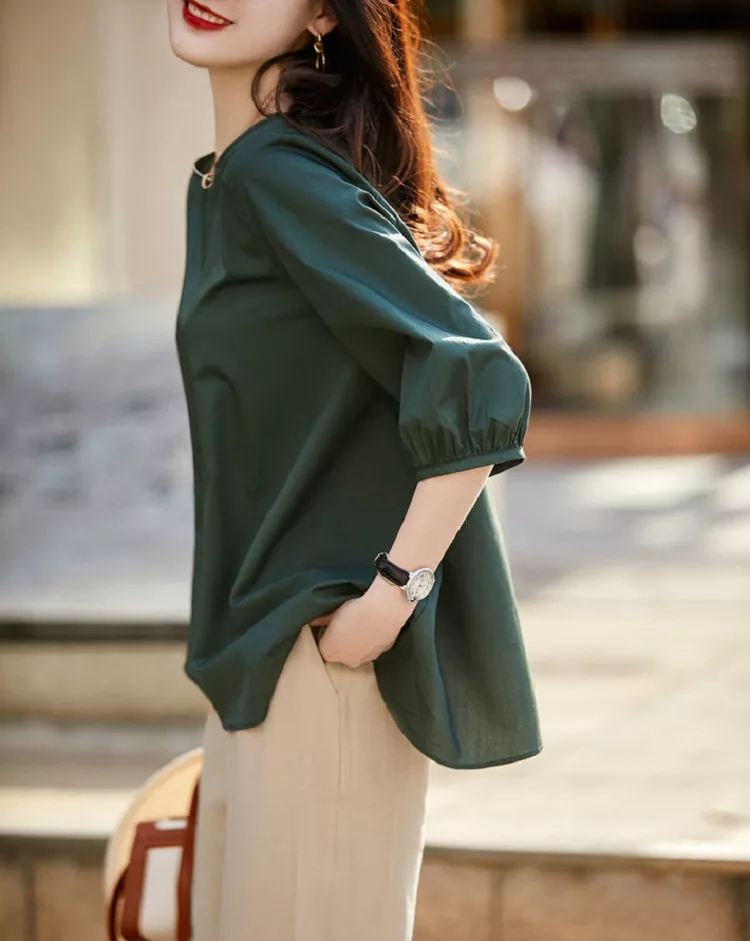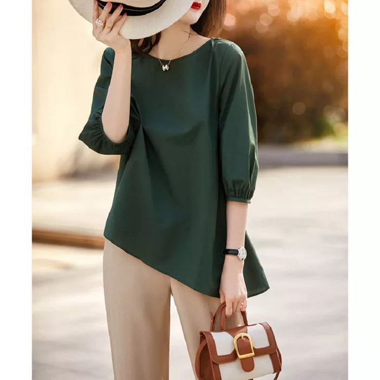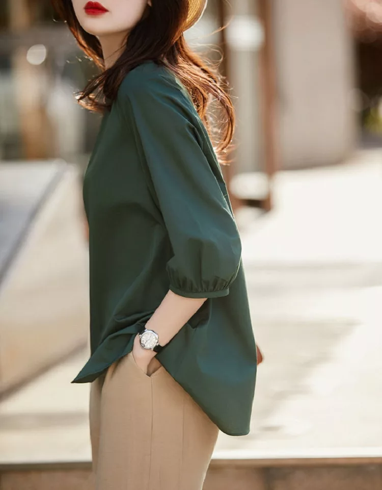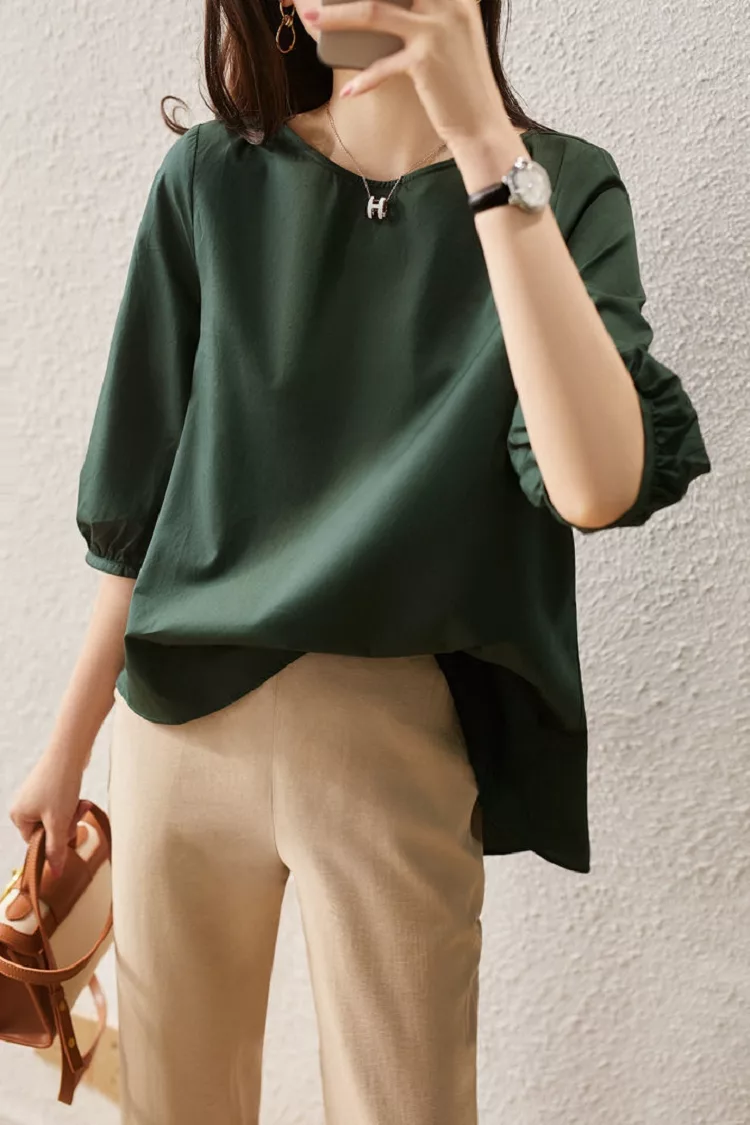【Jilli~ko】不規則斜擺燈籠袖簡單風設計感上衣 J8719  FREE 綠色