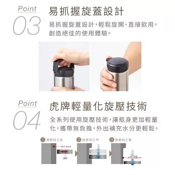 TIGER虎牌 夢重力超輕量旋蓋不鏽鋼保溫杯 350ml(MMZ-W035) 鷲白