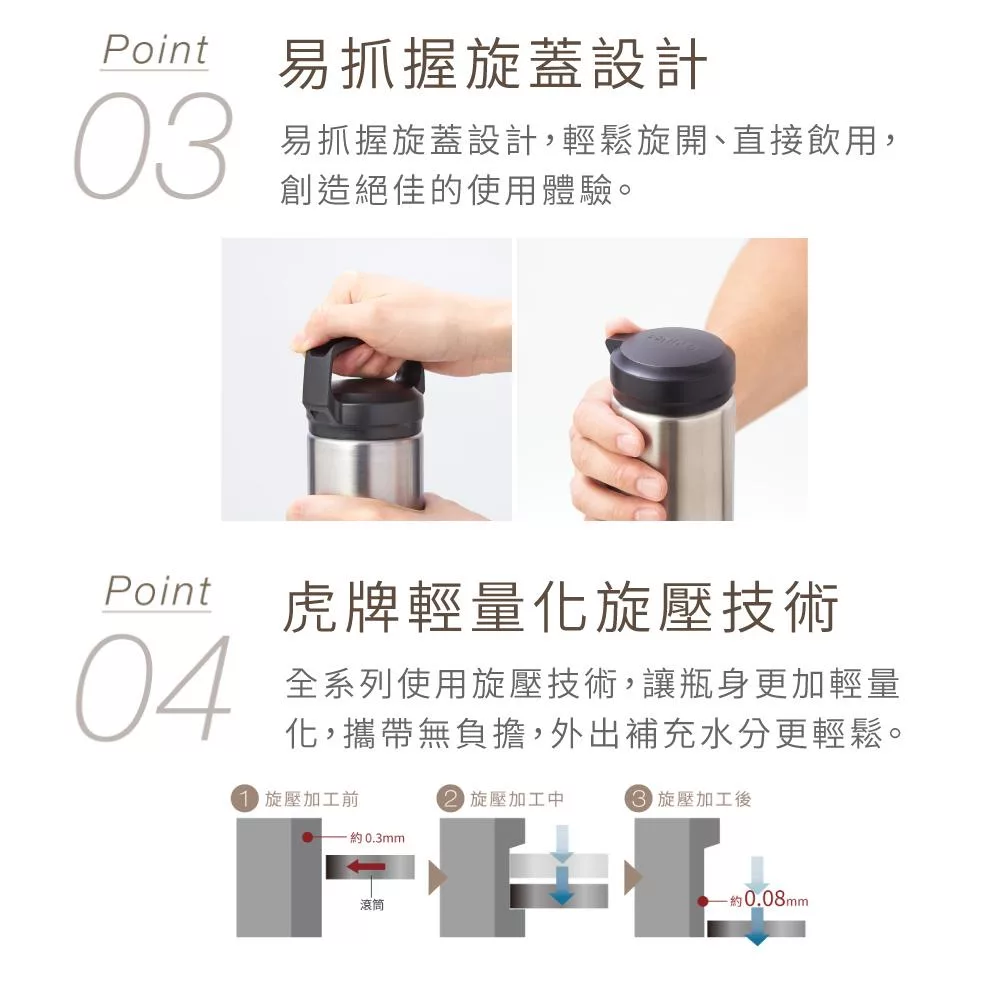 TIGER虎牌 超輕量真空不鏽鋼保溫杯_隨行提把環保杯480ml(MEA-B048) 不鏽鋼