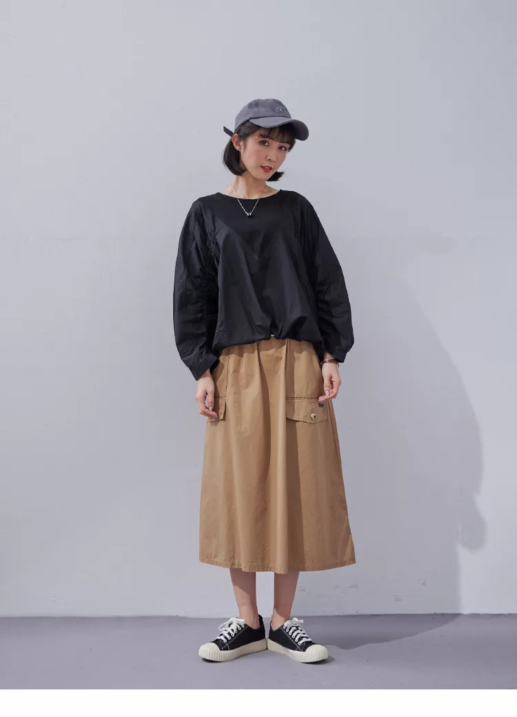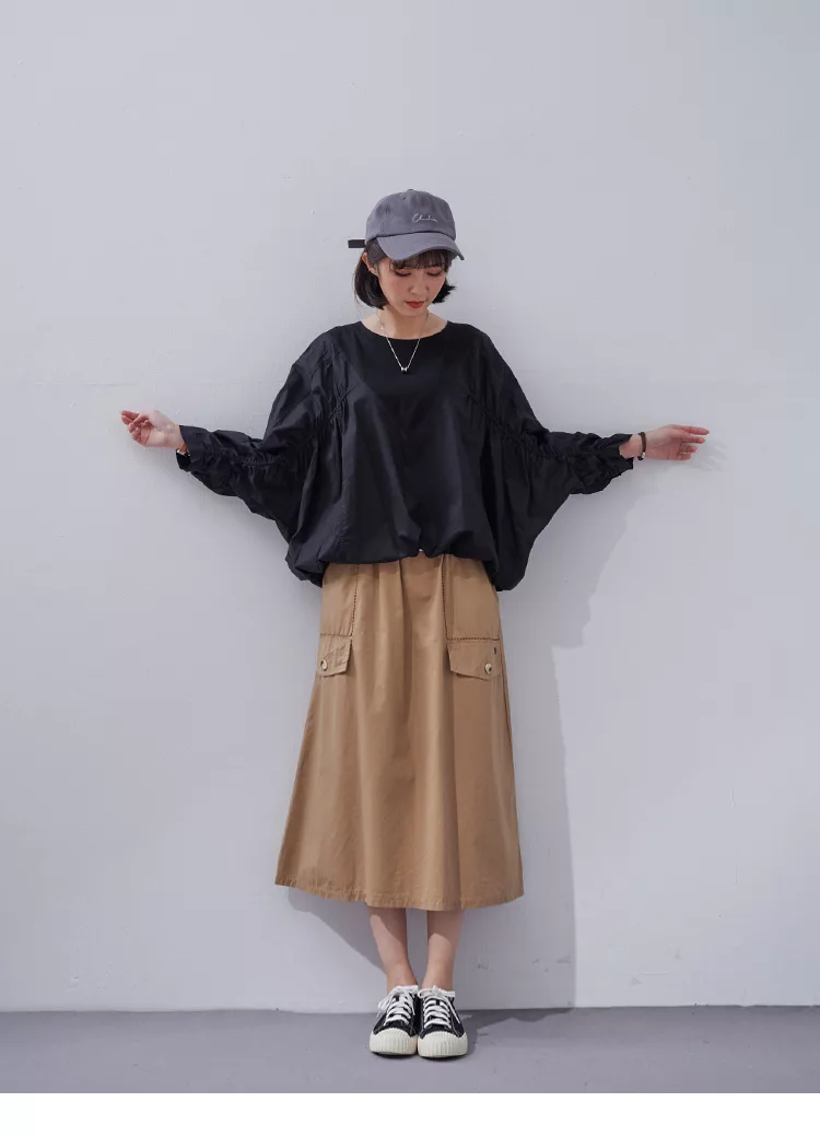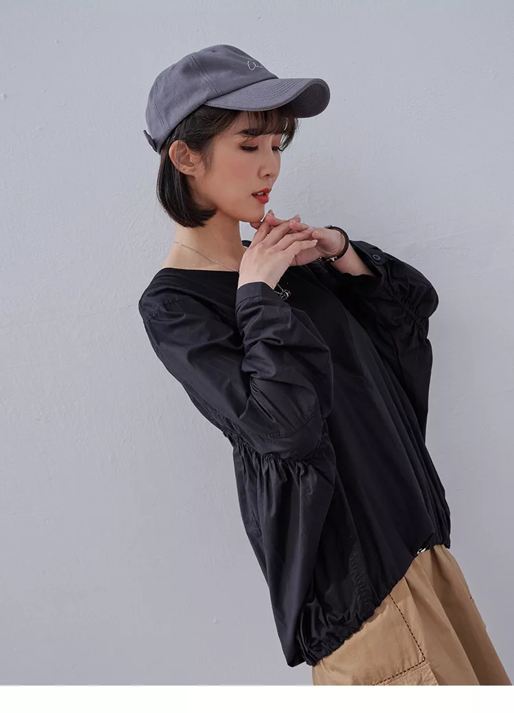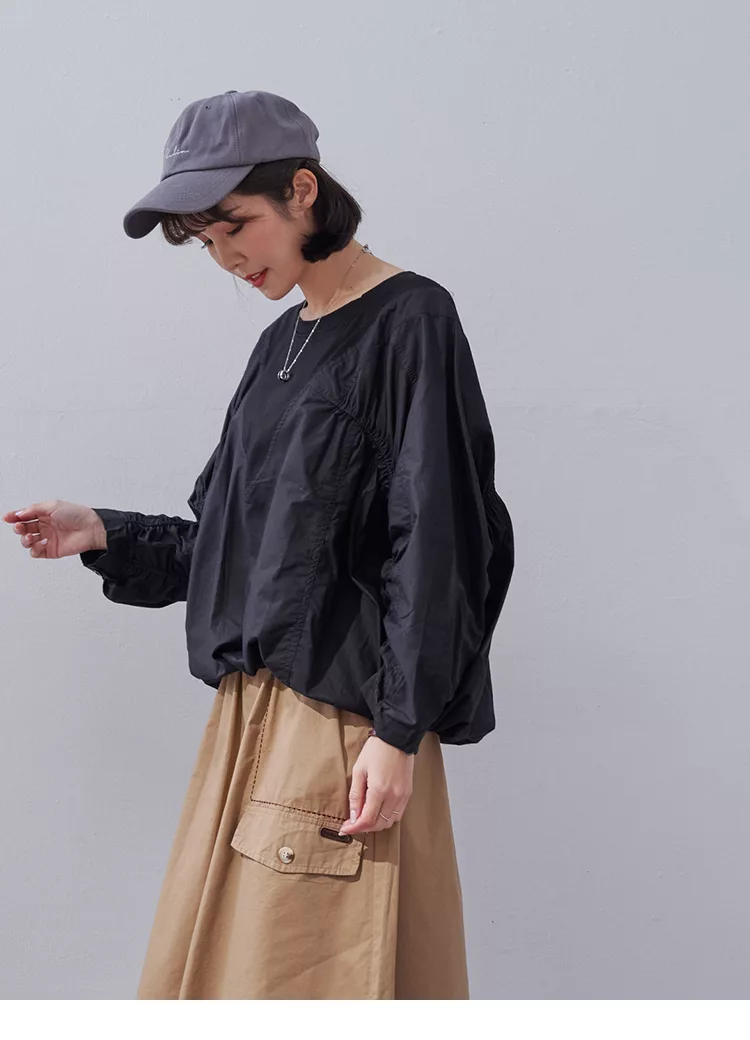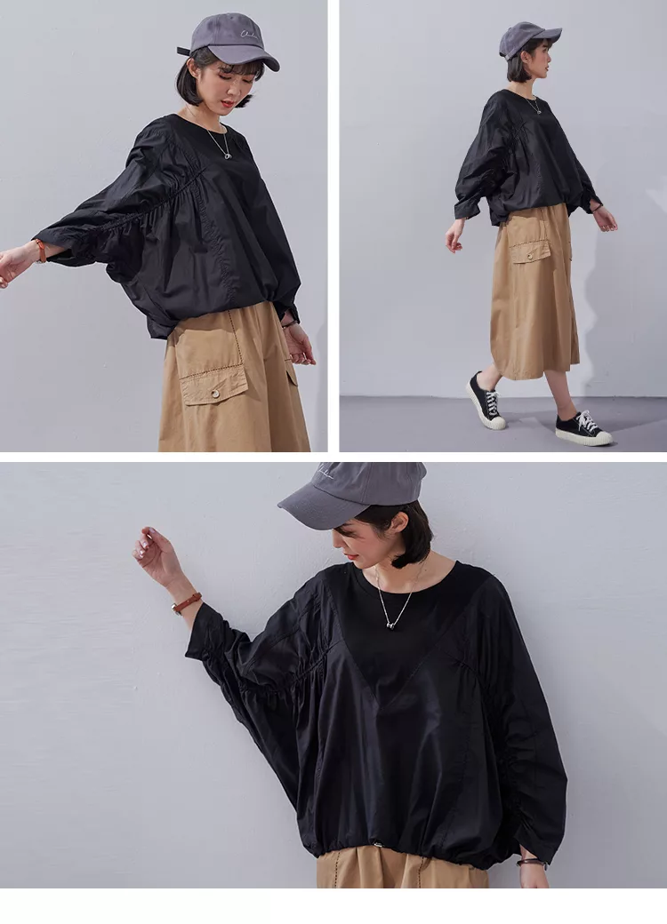 【慢。生活】純色拼接彈性抓皺蝙蝠袖衛衣 0353  FREE 黑色