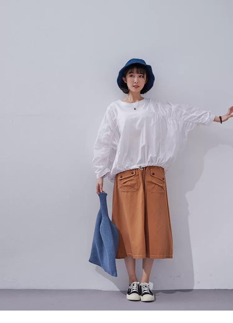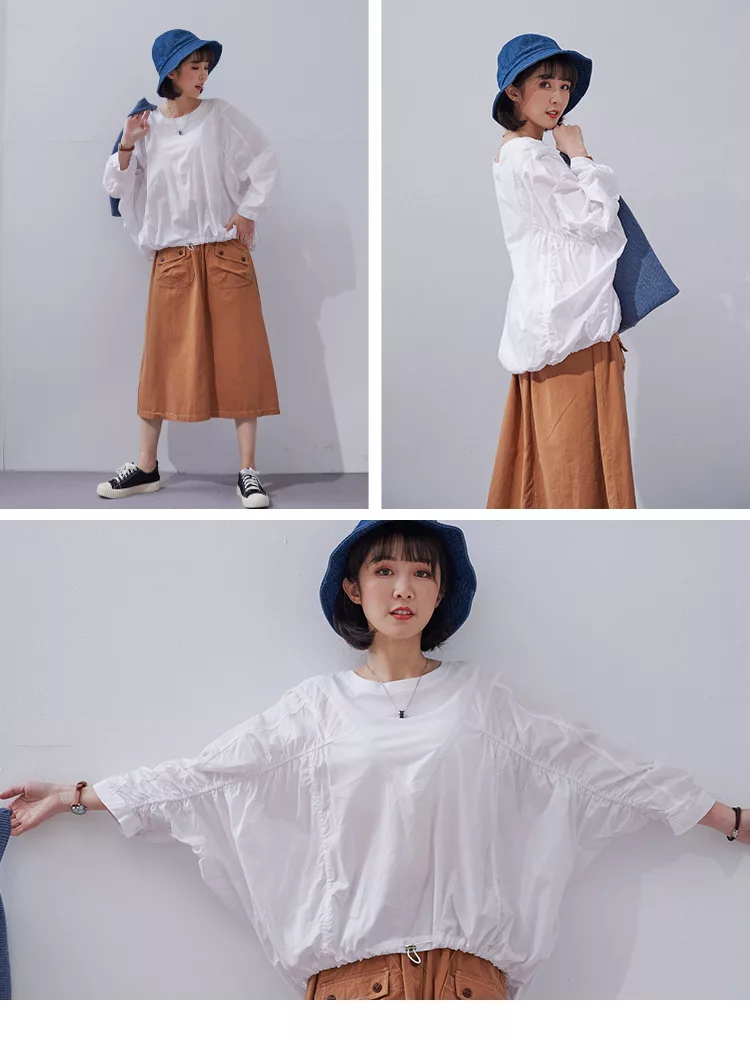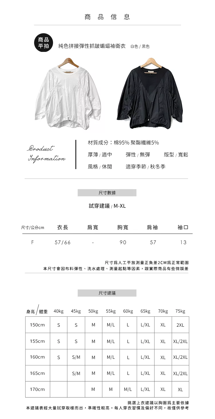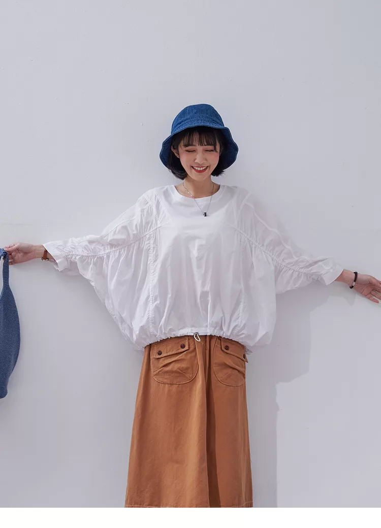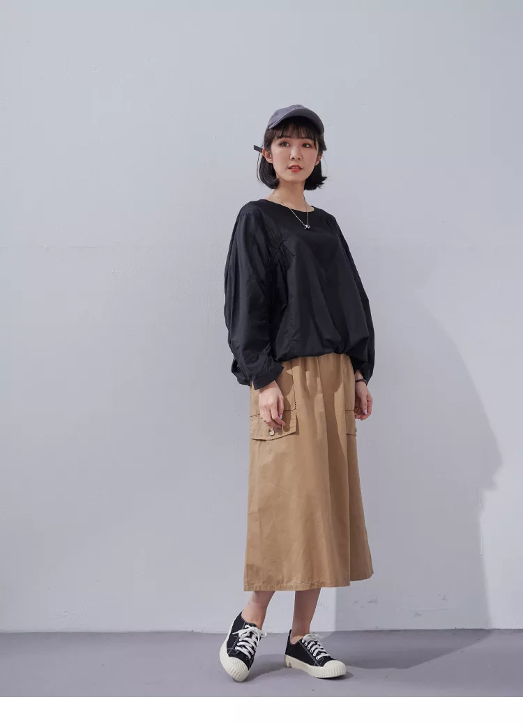 【慢。生活】純色拼接彈性抓皺蝙蝠袖衛衣 0353  FREE 黑色