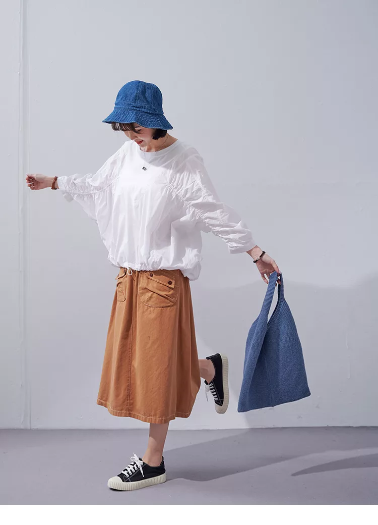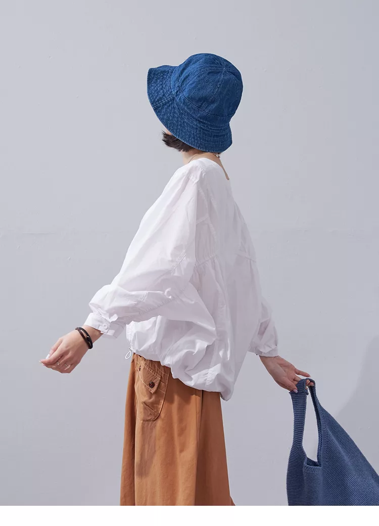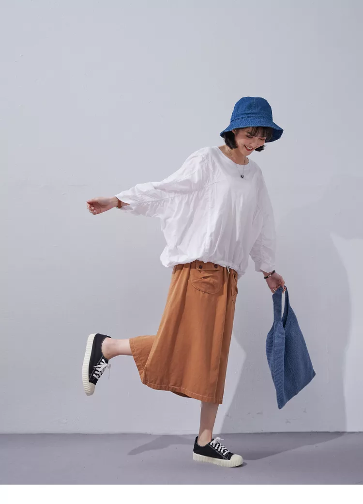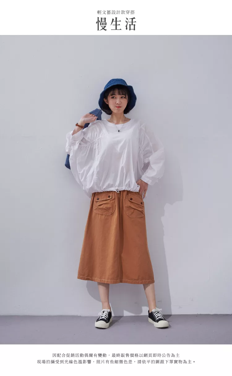 【慢。生活】棉麻圓領落肩連袖上衣 62296 FREE 藍色