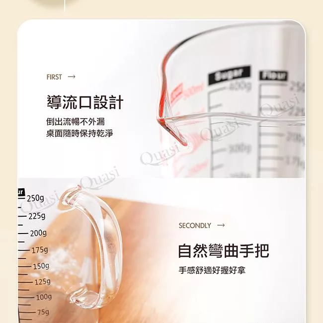 ●杯身清澈透亮,可以一目了然地辨別杯中內容物及測量