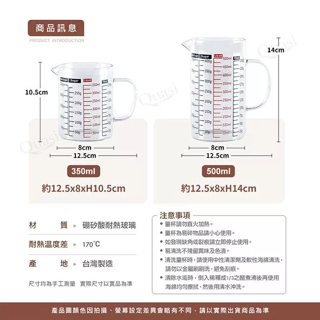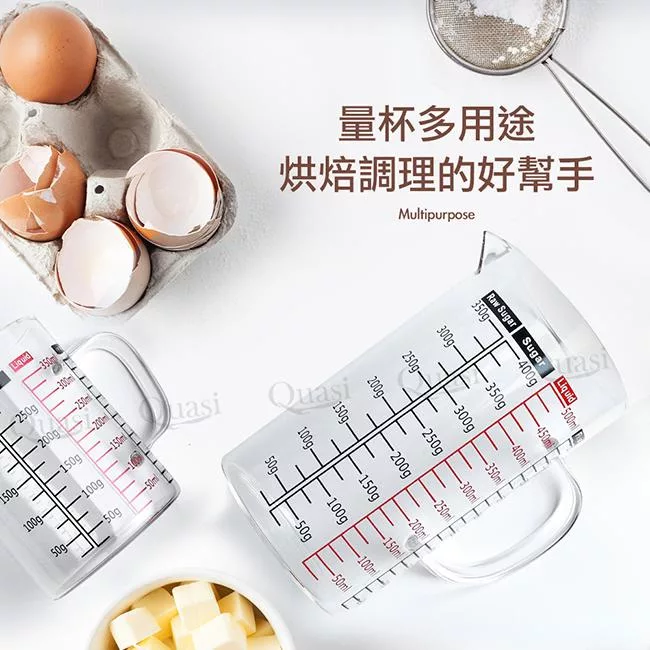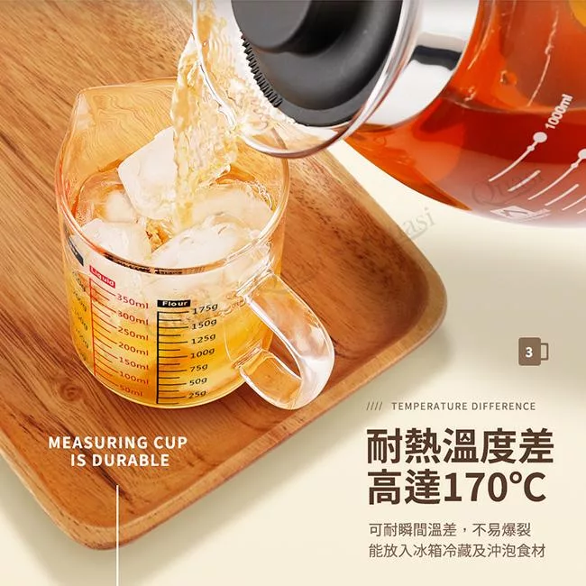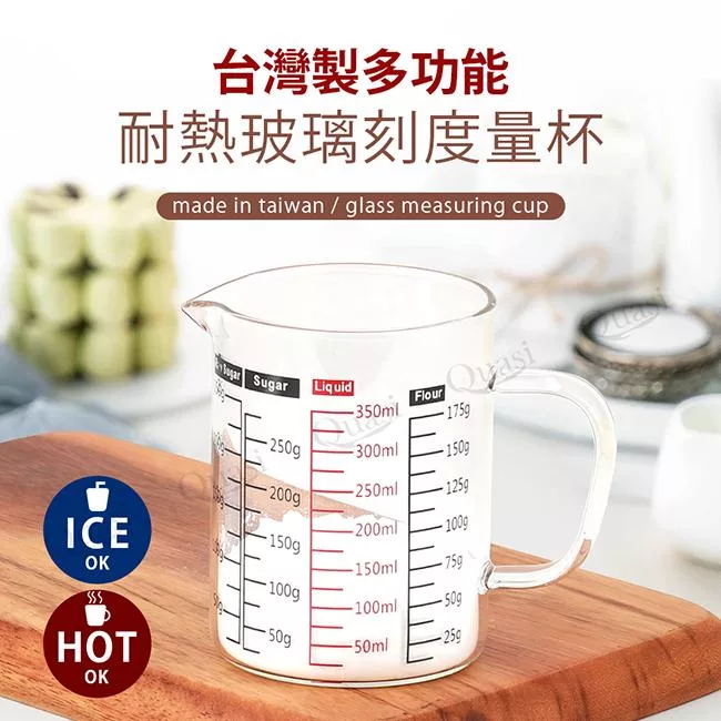 台灣製多功能耐熱玻璃量杯350ml(雙色刻度)