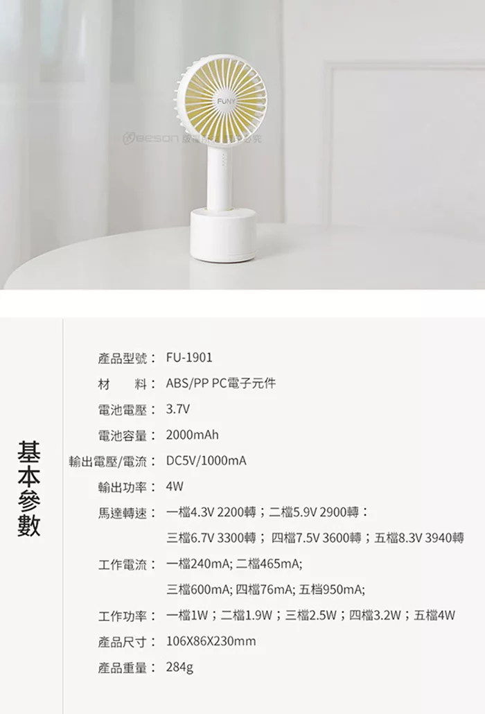 USB插電式5吋風扇桌上型可夾式多功能循環涼風扇 白色