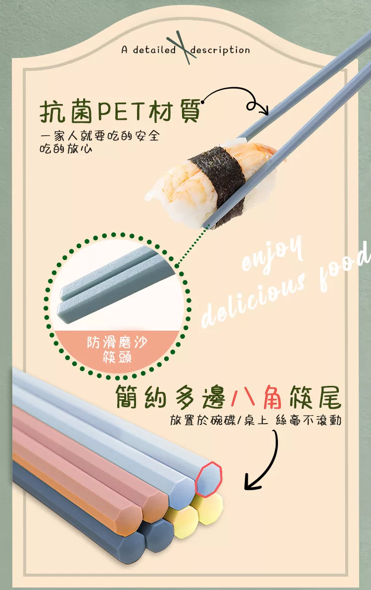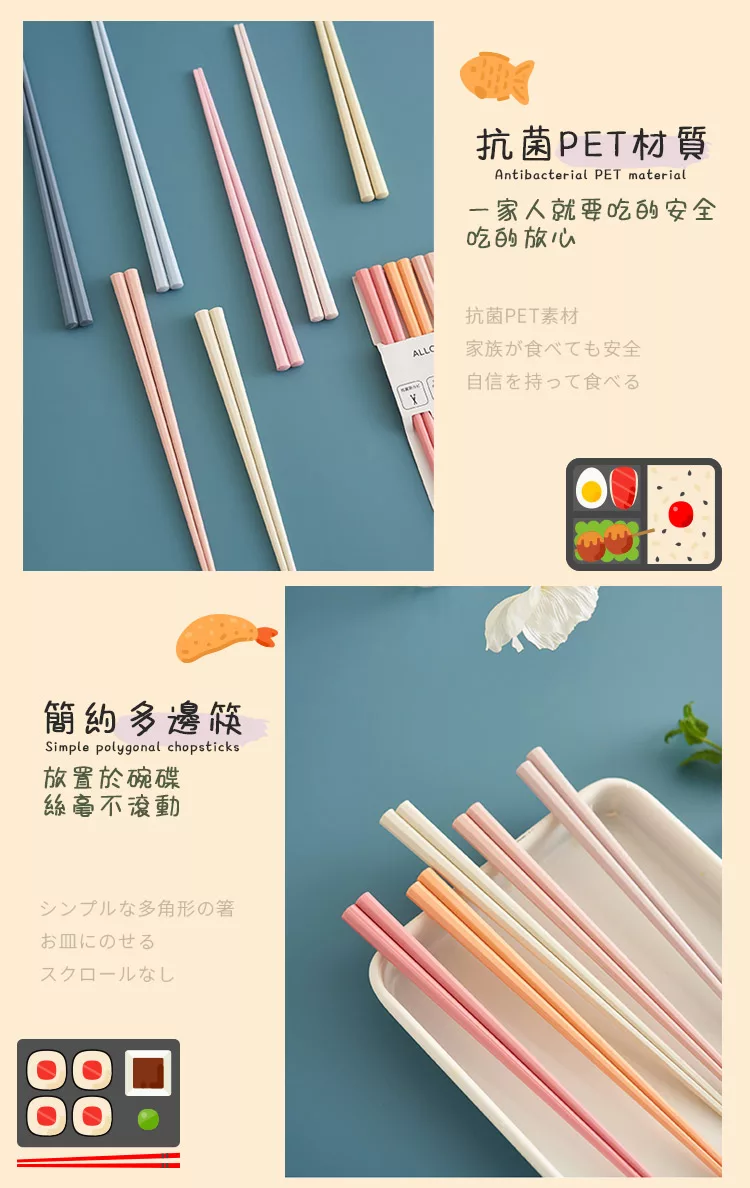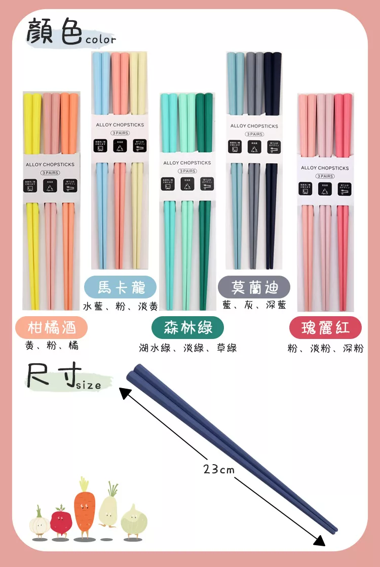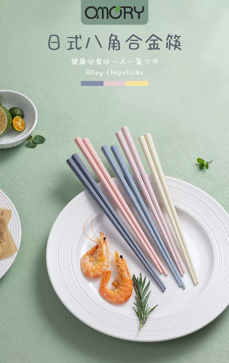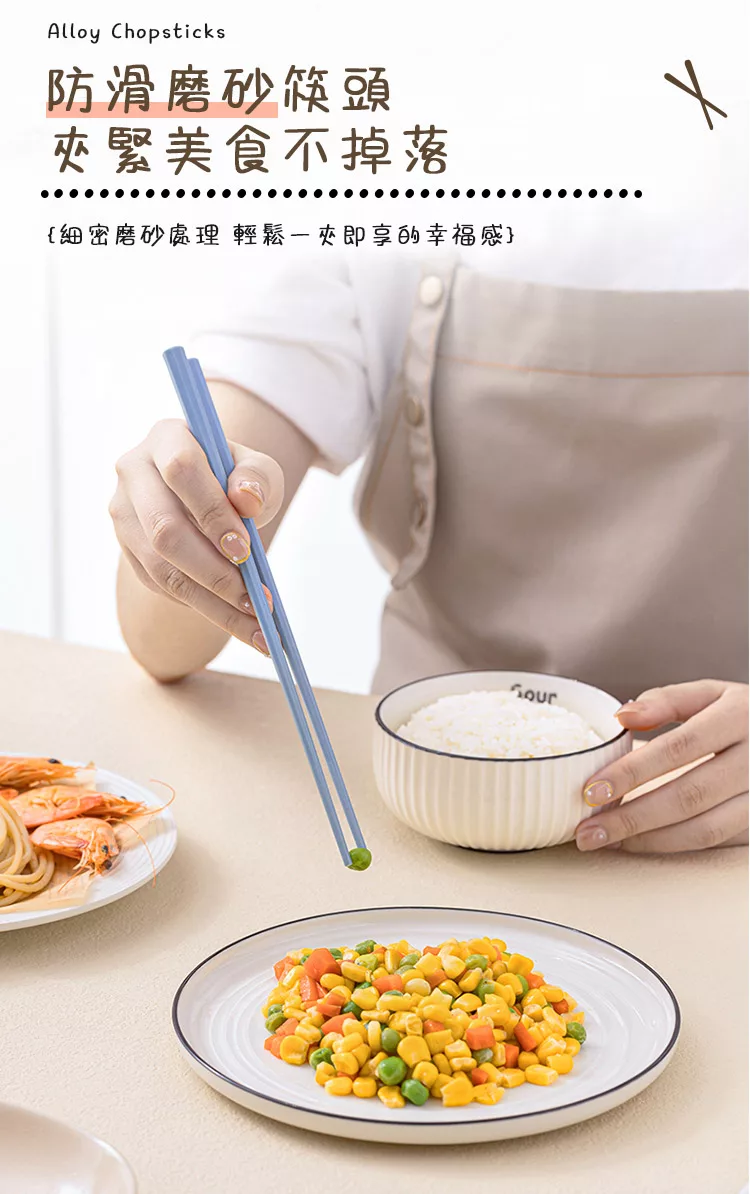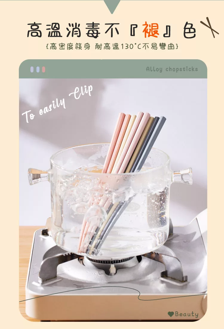 【半末】日式合金筷/耐高溫防滑防霉筷/方邊形防滑磨砂 五色組 -莫蘭迪