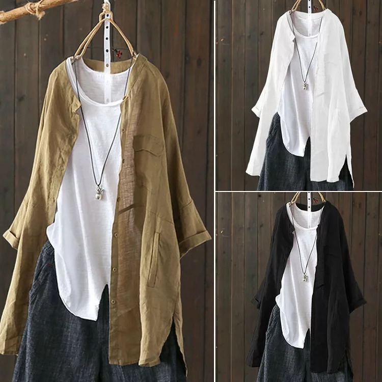 【慢。生活】自訂款棉麻薄款休閒百搭寬鬆防曬開衫 8218  FREE 黑色