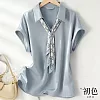 【初色】絲巾翻領襯衫領短袖上衣-藍色-67601(M-2XL可選) M 藍色