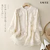 【AMIEE】刺繡立領五分袖襯衫女上衣(KDTY-6577) M 米白色