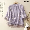 【AMIEE】刺繡立領五分袖襯衫女上衣(KDTY-6577) M 紫色