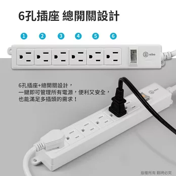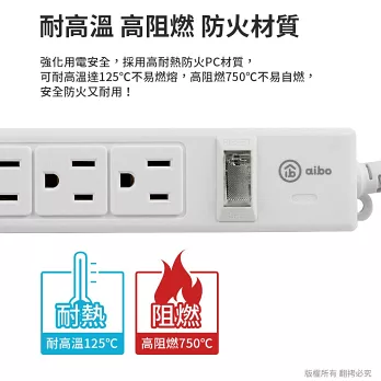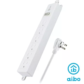 aibo 台灣製 7開6插按壓式 過載斷電開關延長線(拉環扁插)-1.8米