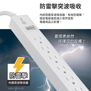 群加 PowerSync 六開六插防雷擊延長線/4.5m(TPS366AN9045)