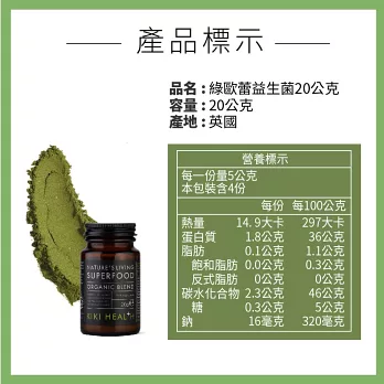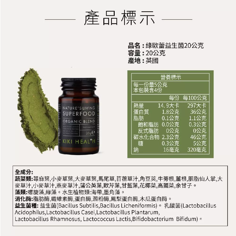 【奇奇保健 KIKI-Health】綠歐蕾益生菌20gx1/瓶(綠拿鐵/青汁/素食/酵素/藻類/螺旋藻/排便順暢/超級食物)