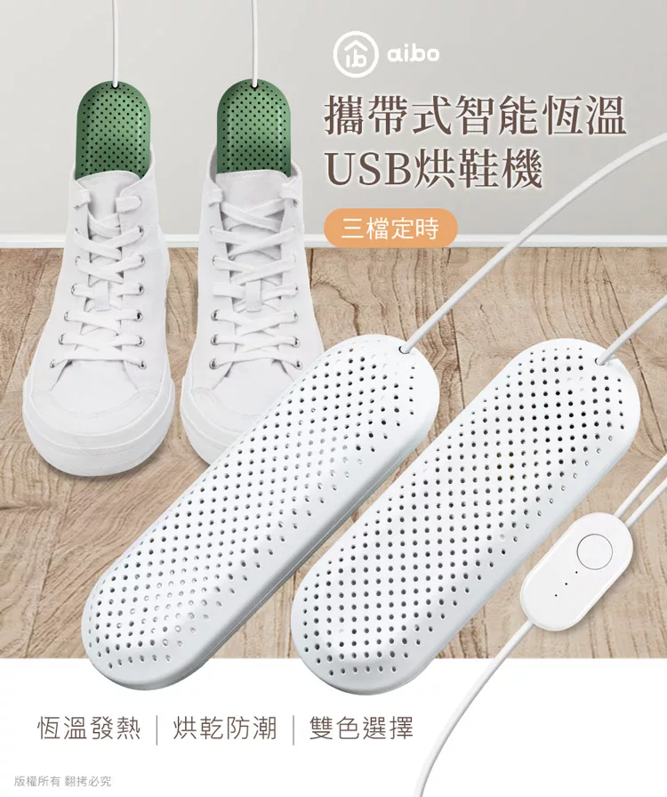 aibo 攜帶式智能恆溫 USB烘鞋機 (三檔定時) 白色