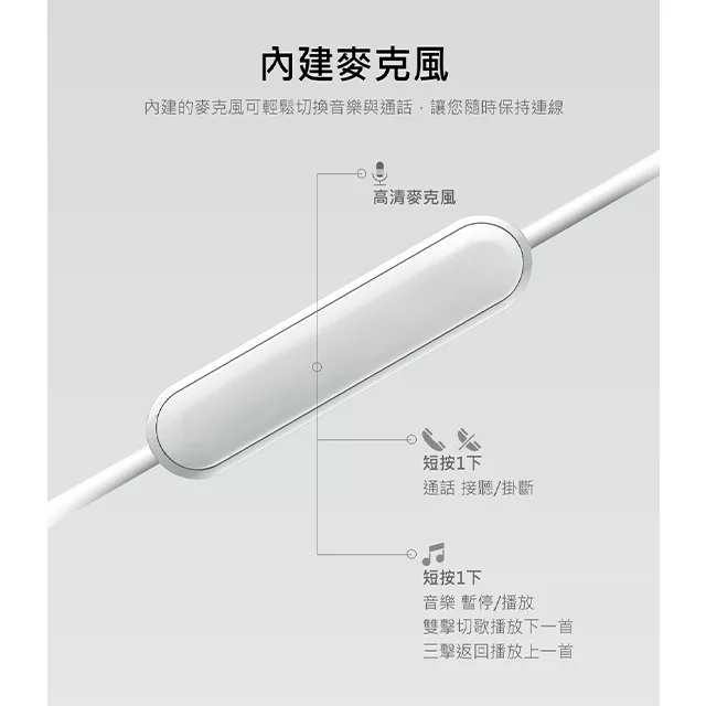 * 橢圓型導音管耳塞,提供符合人體工學的舒適貼合感