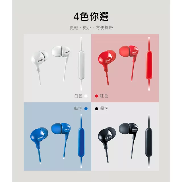 PHILIPS 飛利浦 有線入耳式耳機 線控麥克風 SHE3555 (四色) 紅色