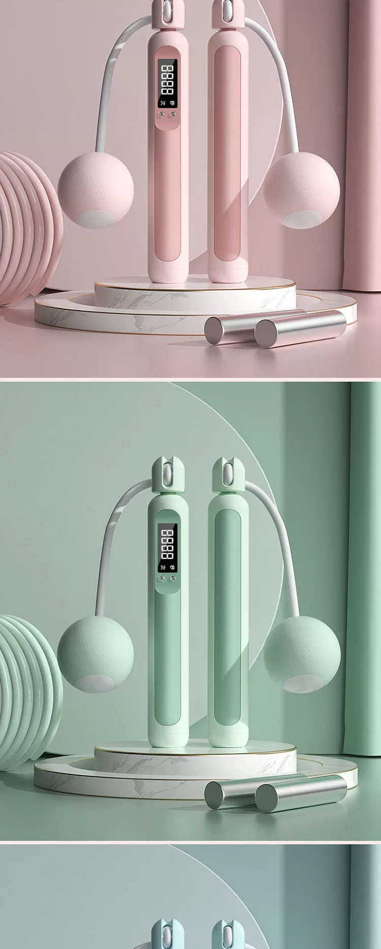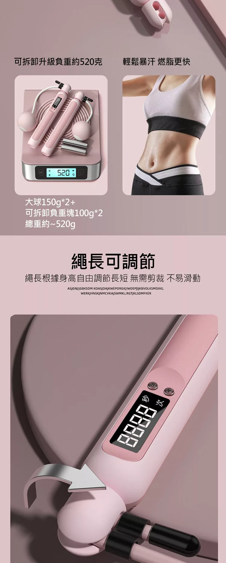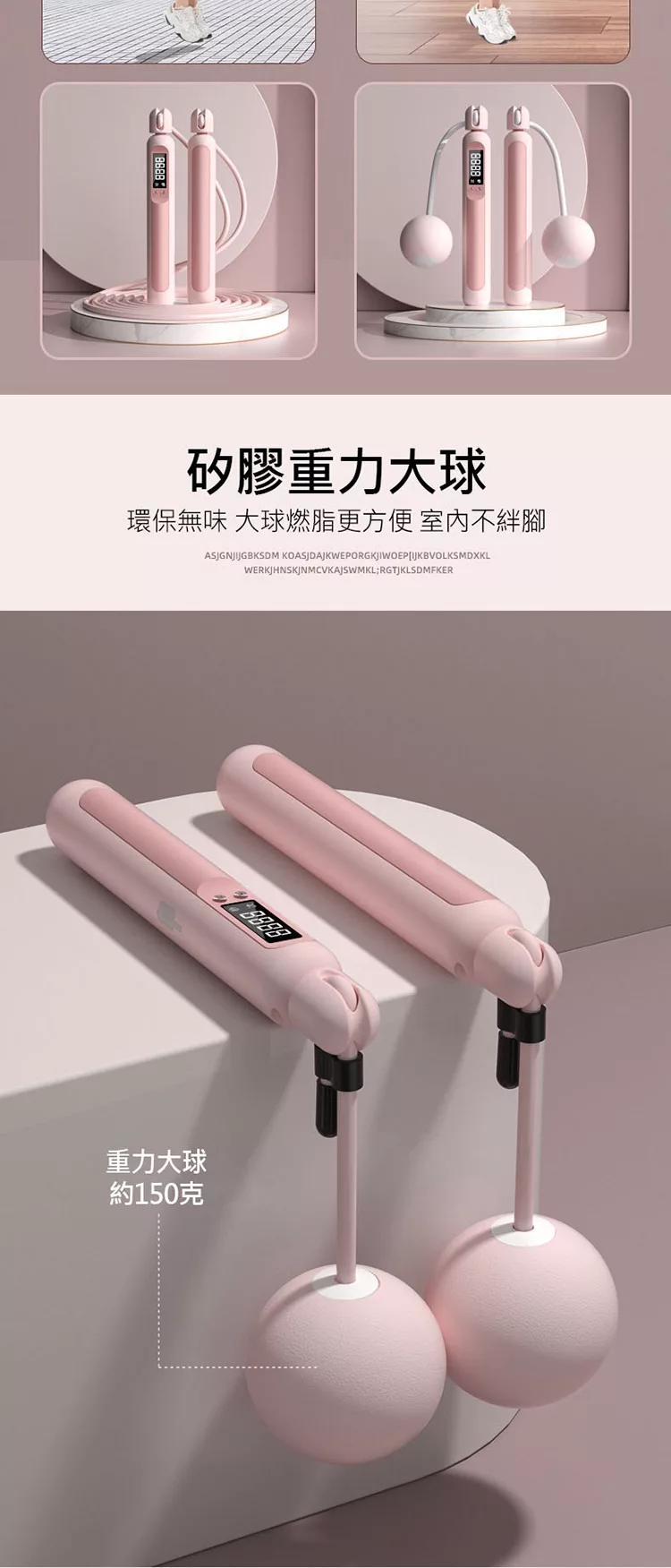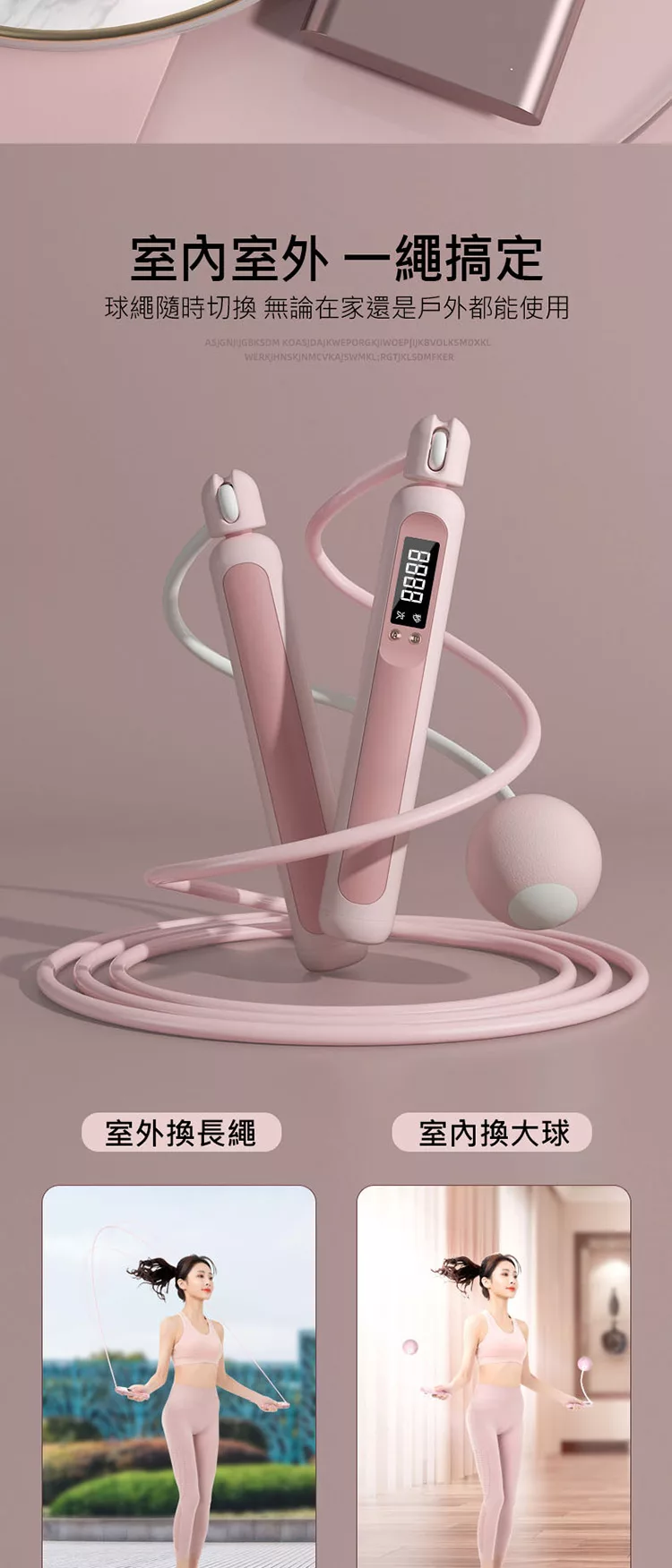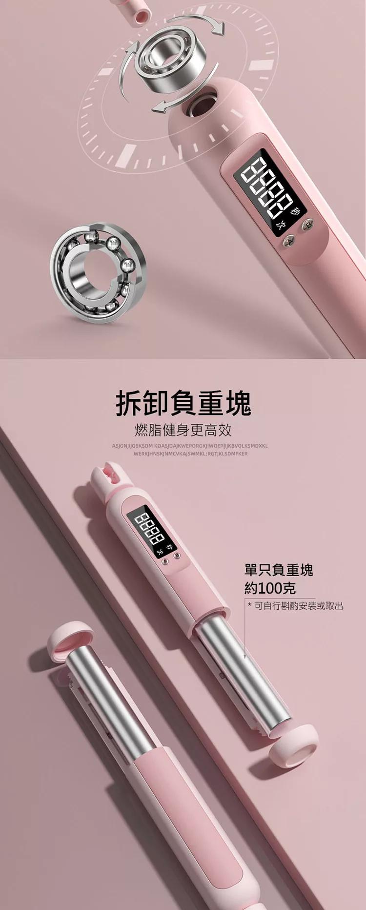 電子計數負重兩用款跳繩 有繩/無繩大球可調節 計數負重跳繩 無線跳繩