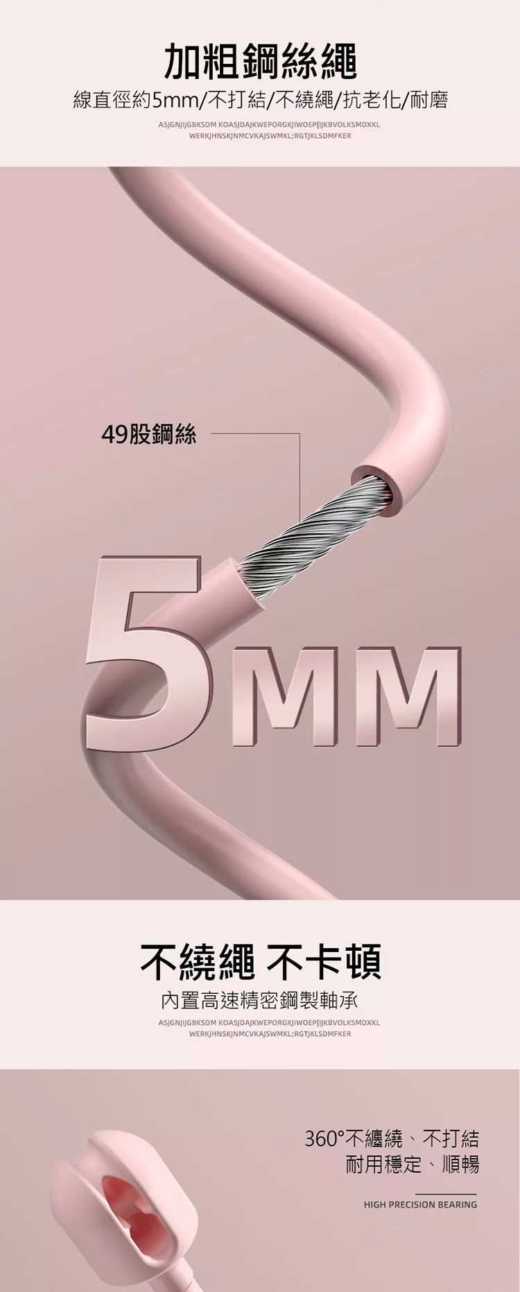 內置高速精密鋼製軸承,流動的跳躍體驗,承軸不卡頭設計,跳繩更順心、順暢。