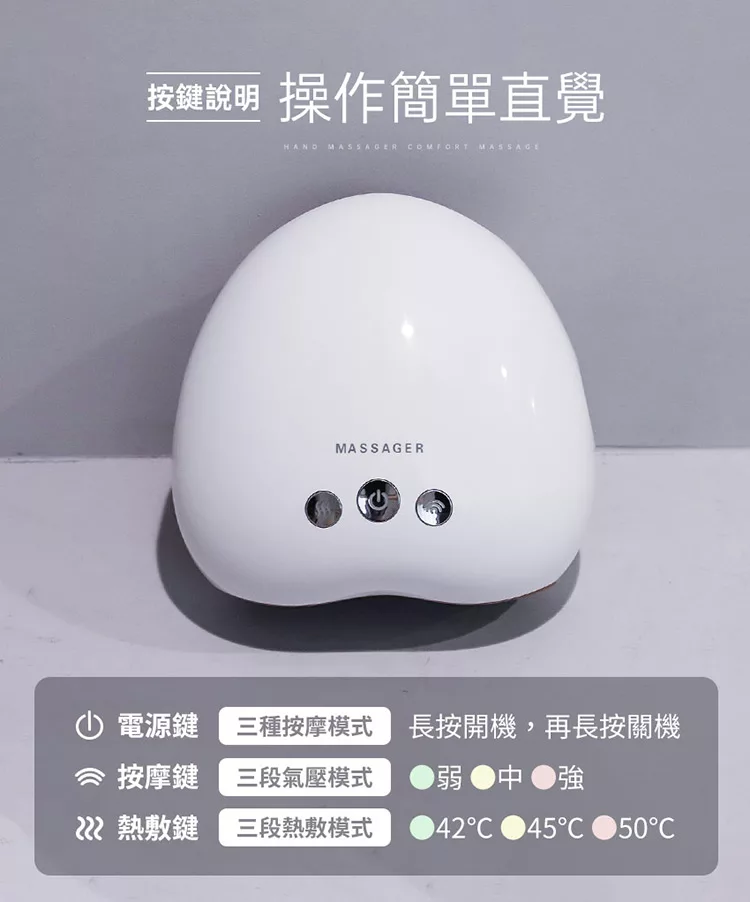 溫揉指|氣壓溫感手部按摩機 手部保養 氣壓按摩 溫感熱敷 白色