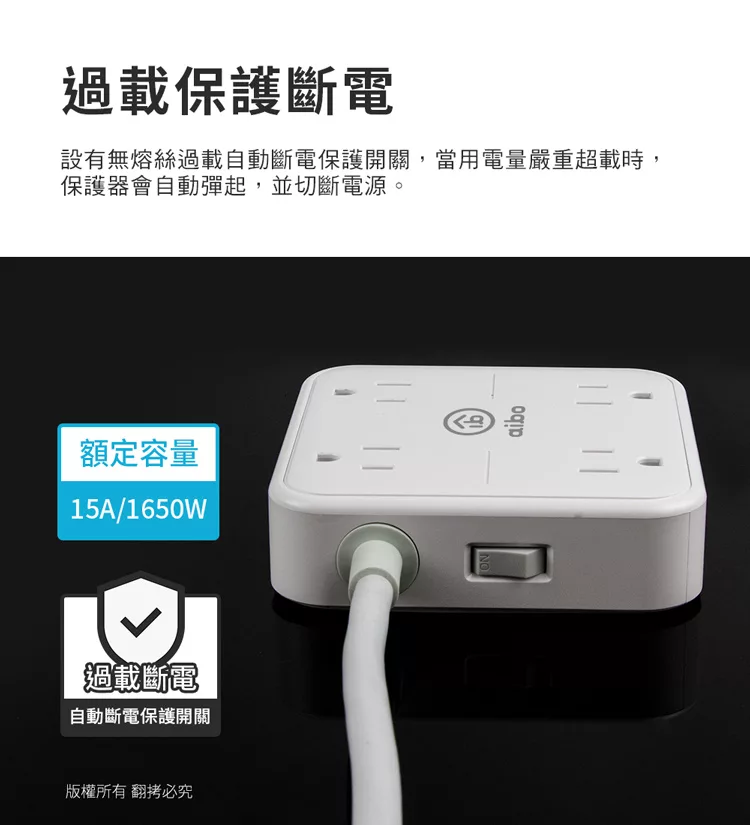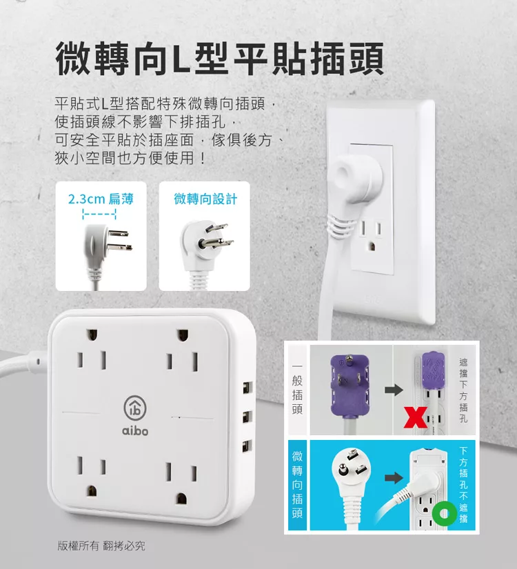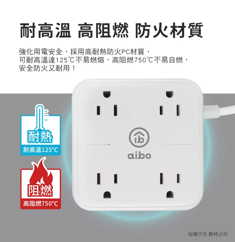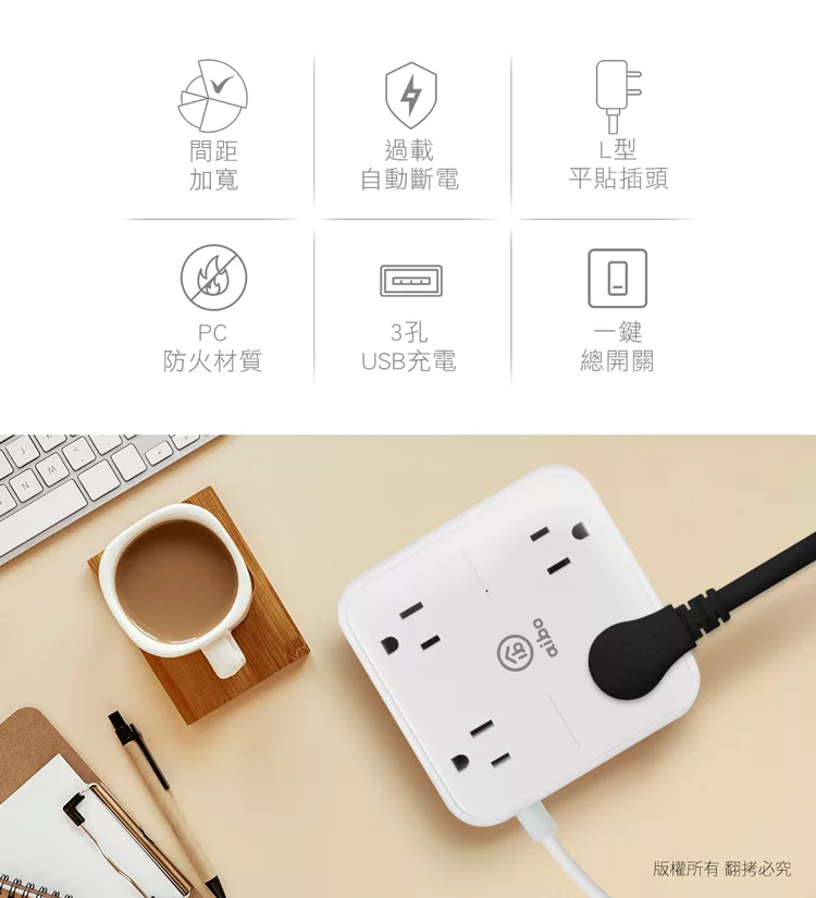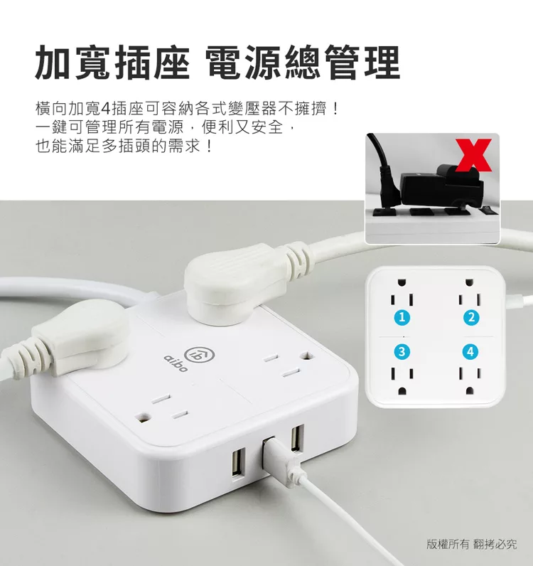 aibo 淨.極簡 3孔4插 USB延長線-1.8米