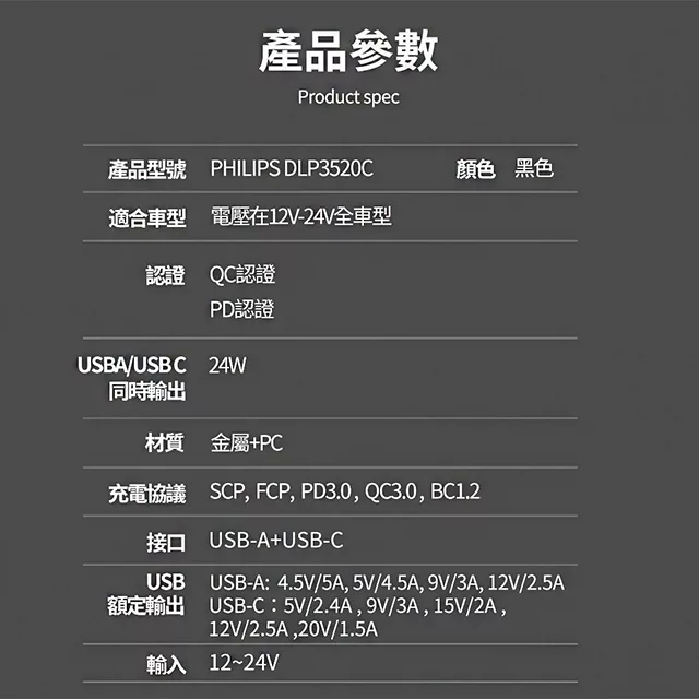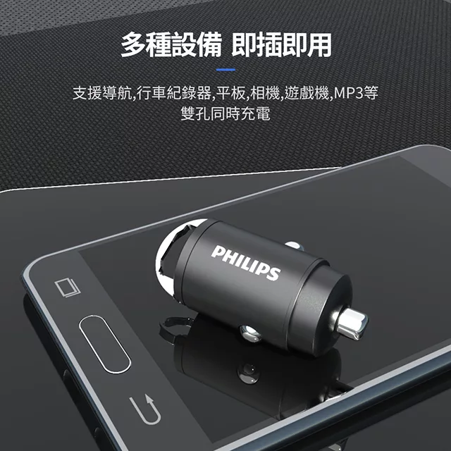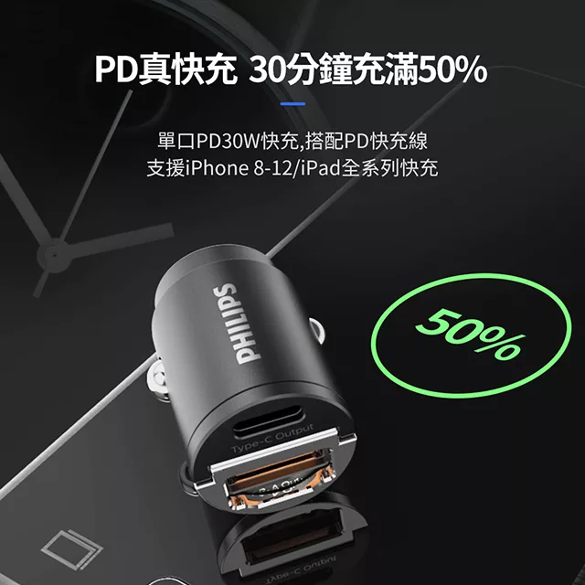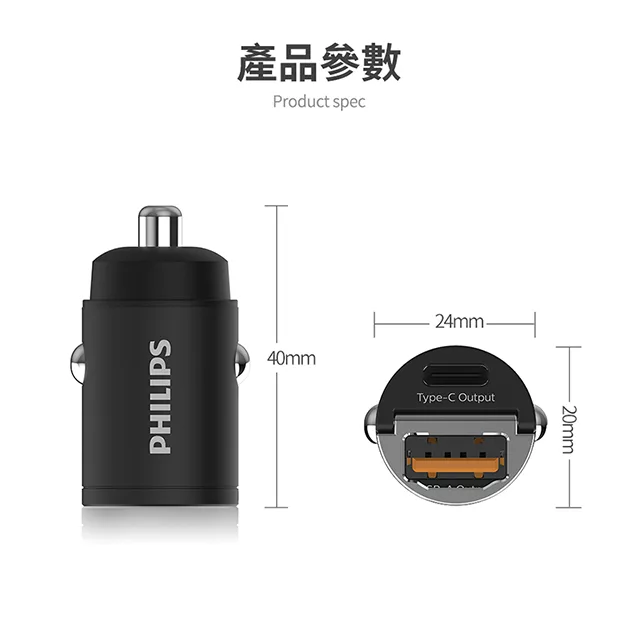 PHILIPS 飛利浦 30W PD+QC USB/Type-C 迷你車充 DLP3520C 黑色